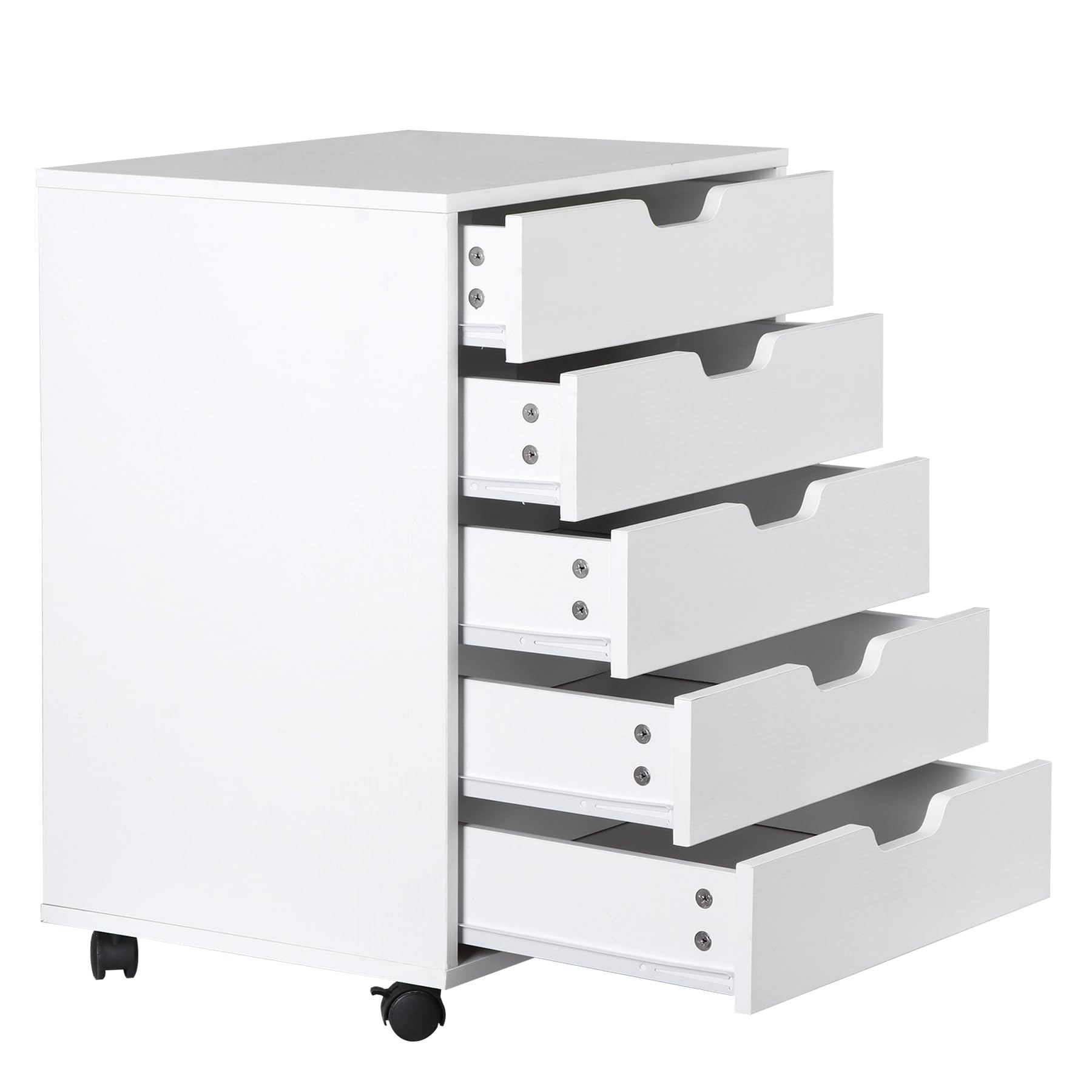 5 Drawer Chest Storage Cabinet Dresser, Wood Nightstand, Mobile Organizer
