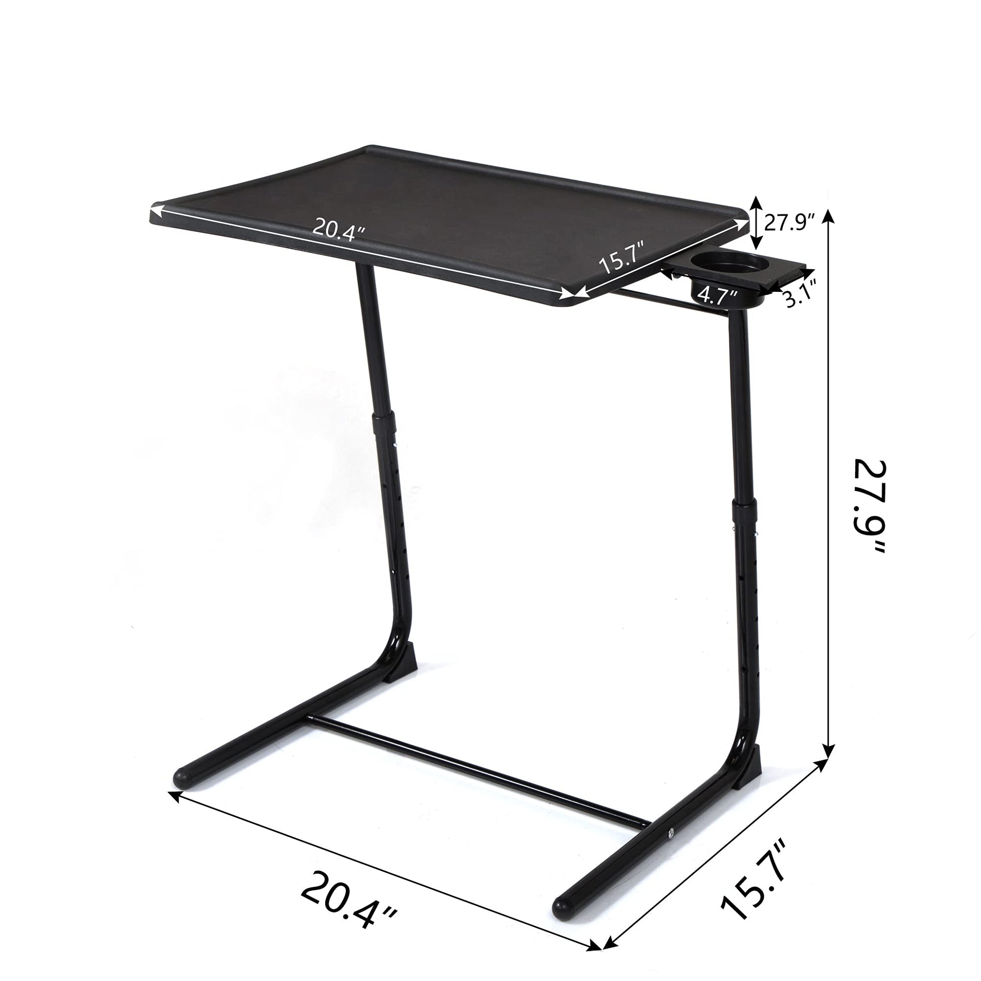 - Height & Angles Adjustable This TV tray’s height can be fully adjusted from 20.67" to 27.95" and can be adjusted horizontally 1 angle downwards and 1 angle upwards . Easily adjust the height and angle to a find the most comfortable position so you can work or watch a movie without straining your neck or back.