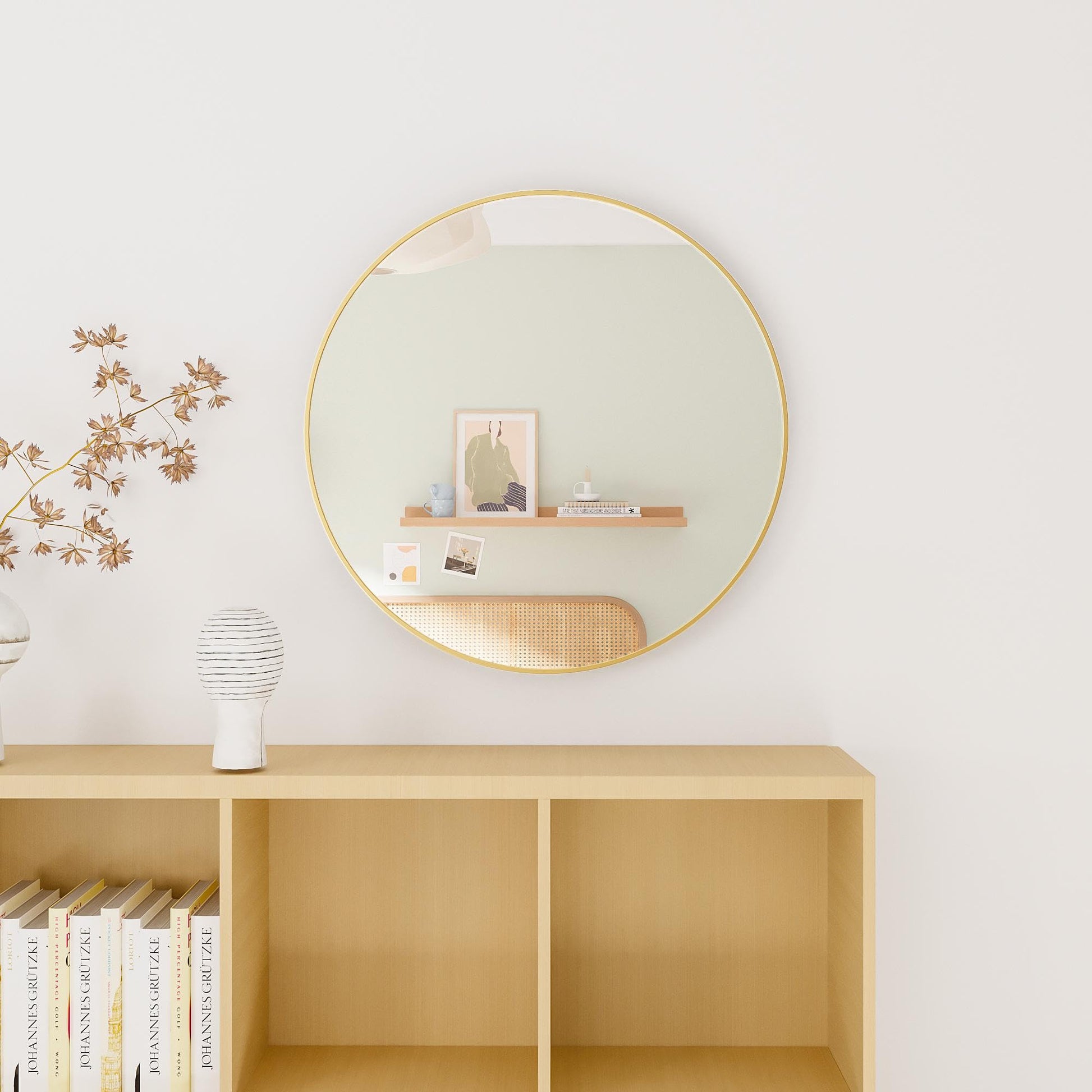 28" Wall Circle Mirror for Bathroom, Gold Round Mirror for Wall, Hanging Round Mirror