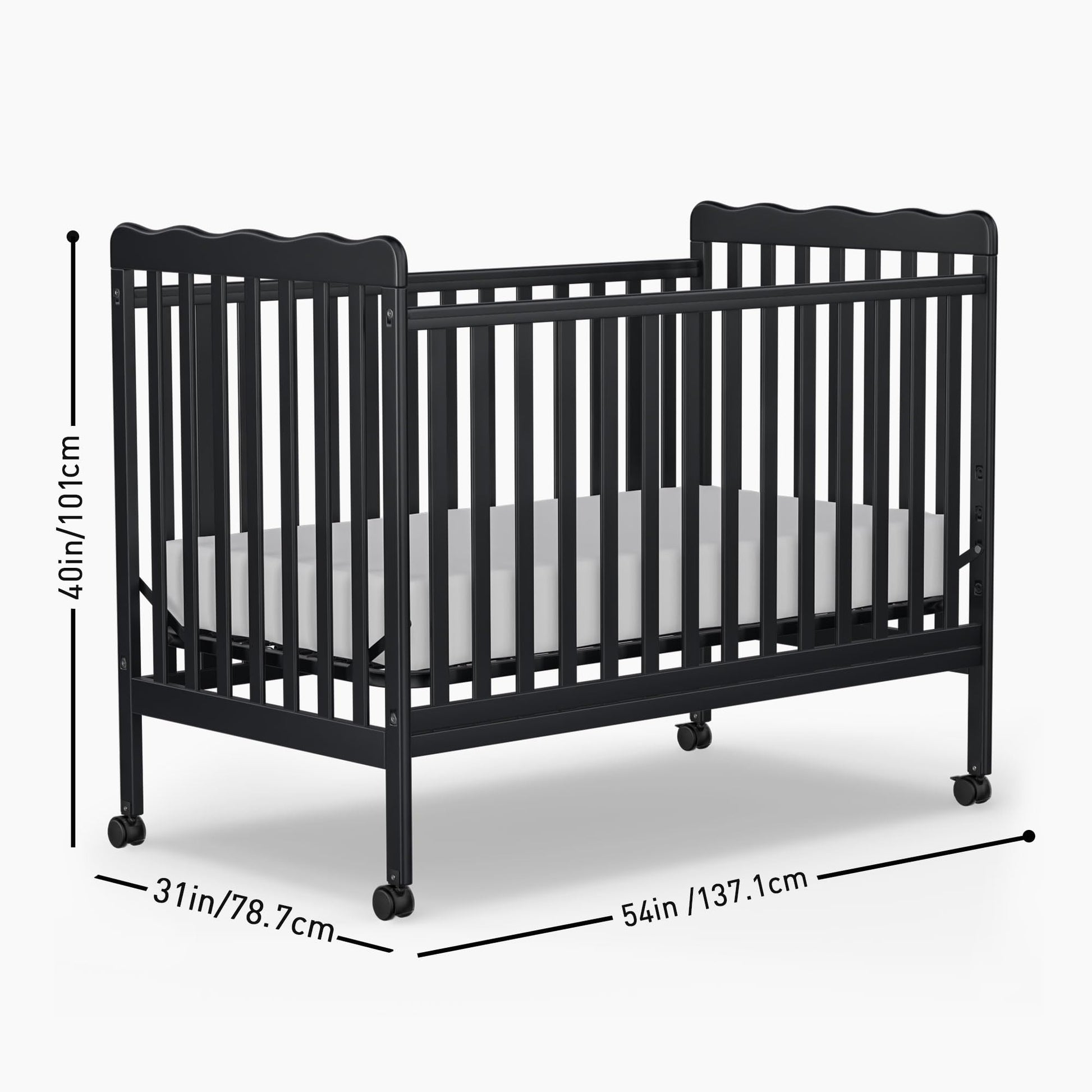 - Complete the Look: Wood crib: 54"W x 31"D x 40"H | Adjustable height mattress support has 3 positions | Fits standard full size crib mattresses.