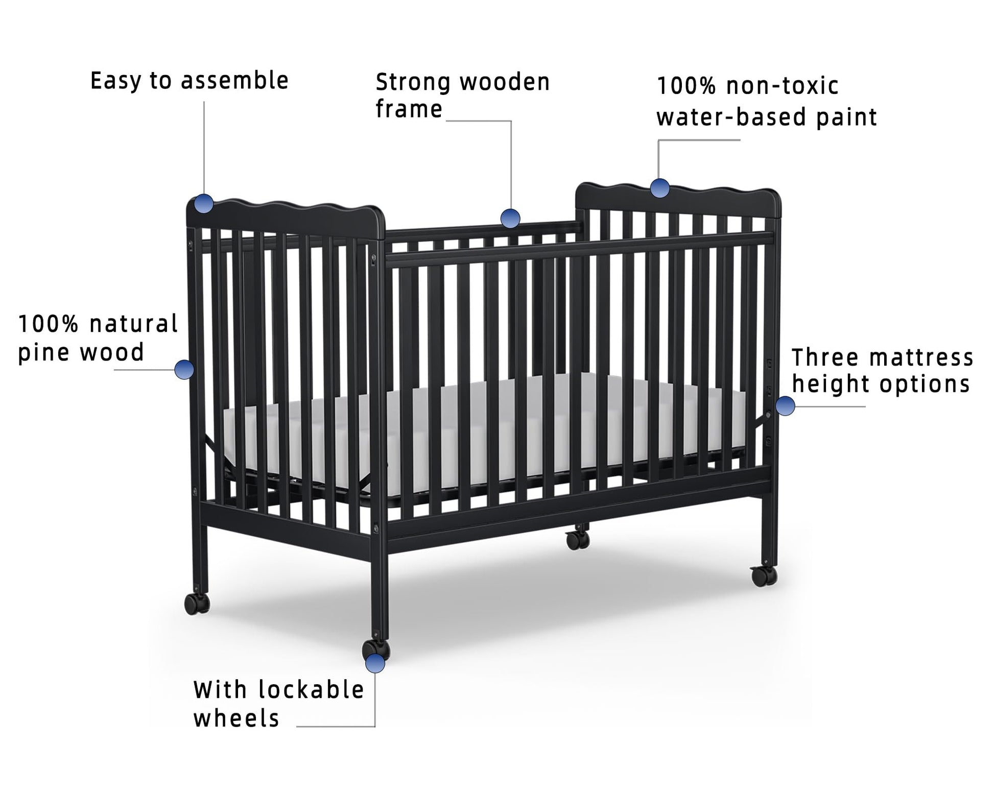- Quality Material: Constructed of sustainable pine wood with lockable safety wheels in an industrial-grade, double-cover design. Finished with a non-toxic, multi-step paint process that is free of lead and phthalates for reliable safety that will stand the test of time.