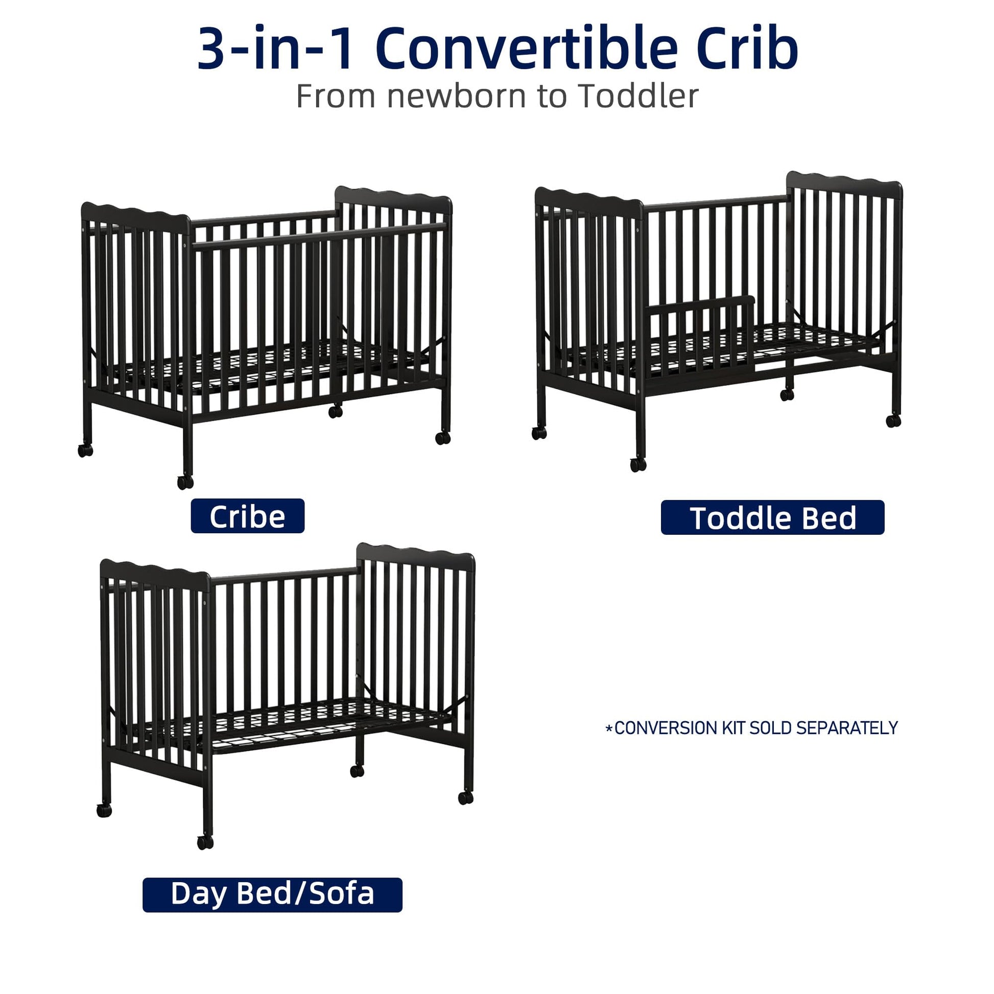 - Versatile Design: The Saylike convertible crib's design mixes straight lines and wave patterns for easy mobility around the home, combining beauty and practicality to perfectly complement any nursery decor. Three mattress heights to choose from to suit different needs.