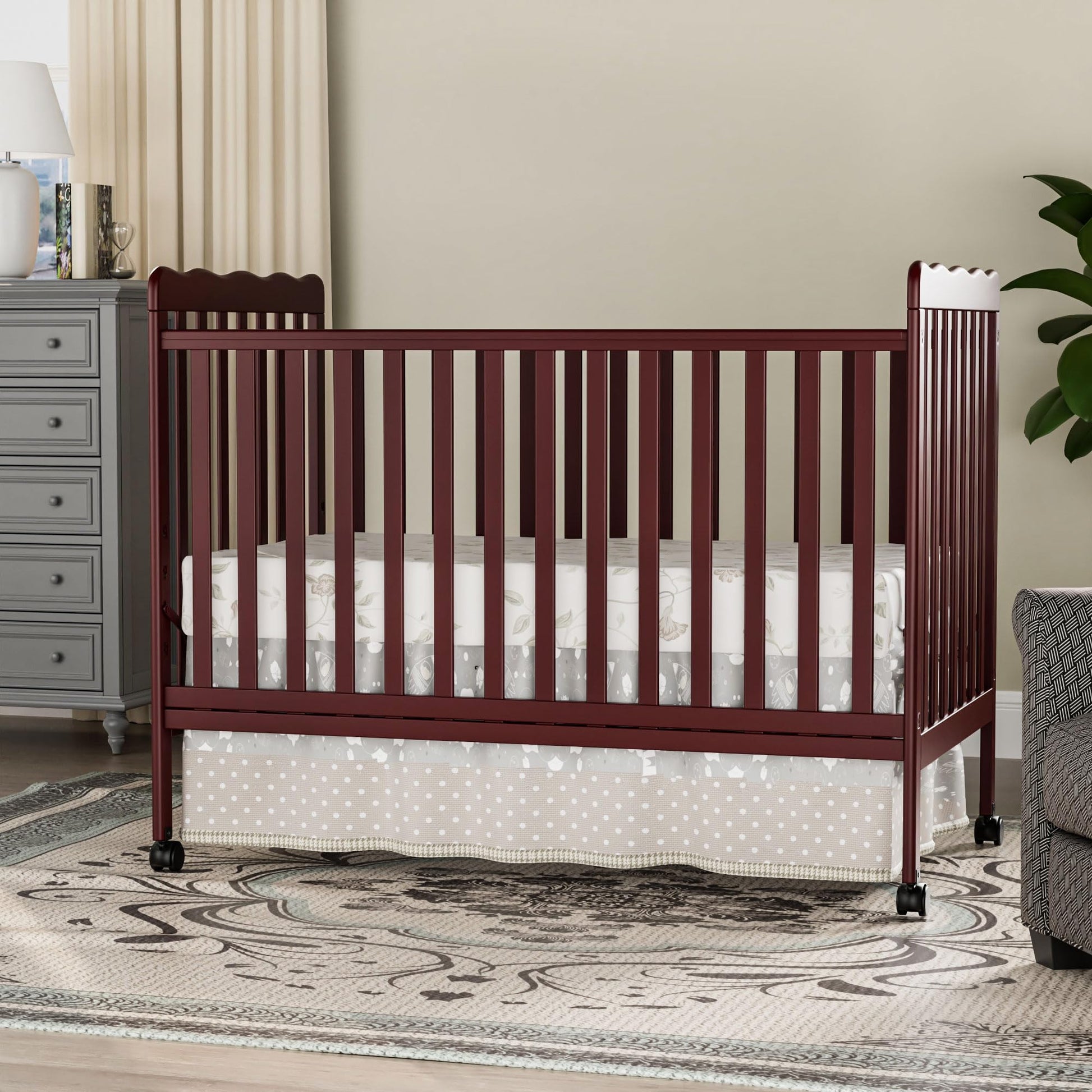 Crib, 3-in-1 Convertible Crib Wood Full Size Toddler Bed with Locking Wheels for Nursery