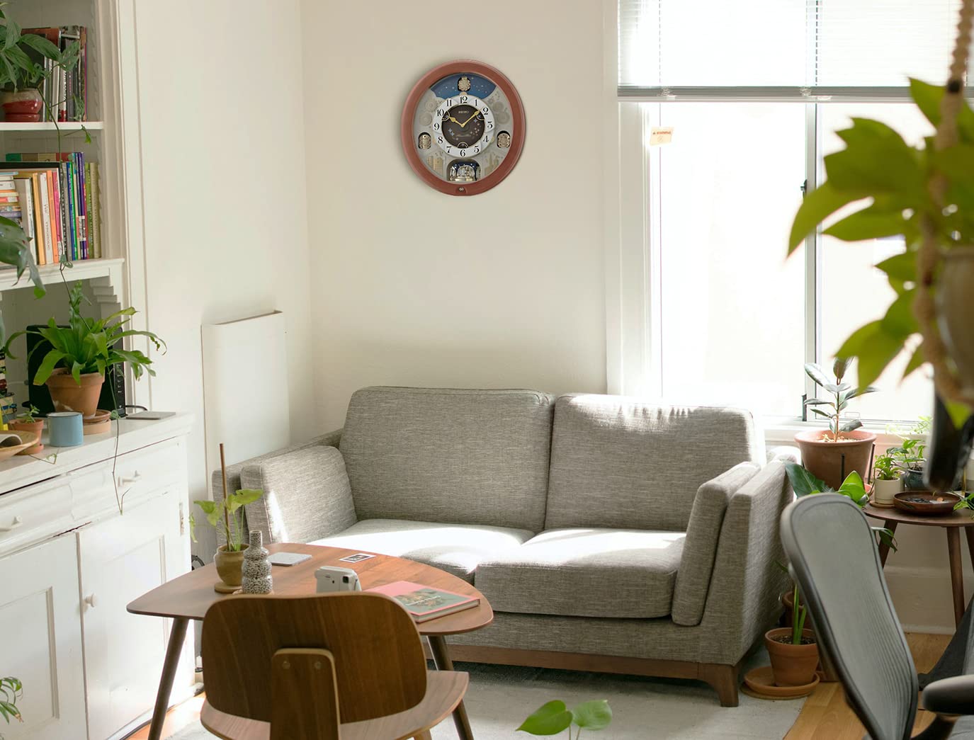 - Rotating center dial opens and closes when melodies are played. Features ornaments of Swarovski Crystals.
