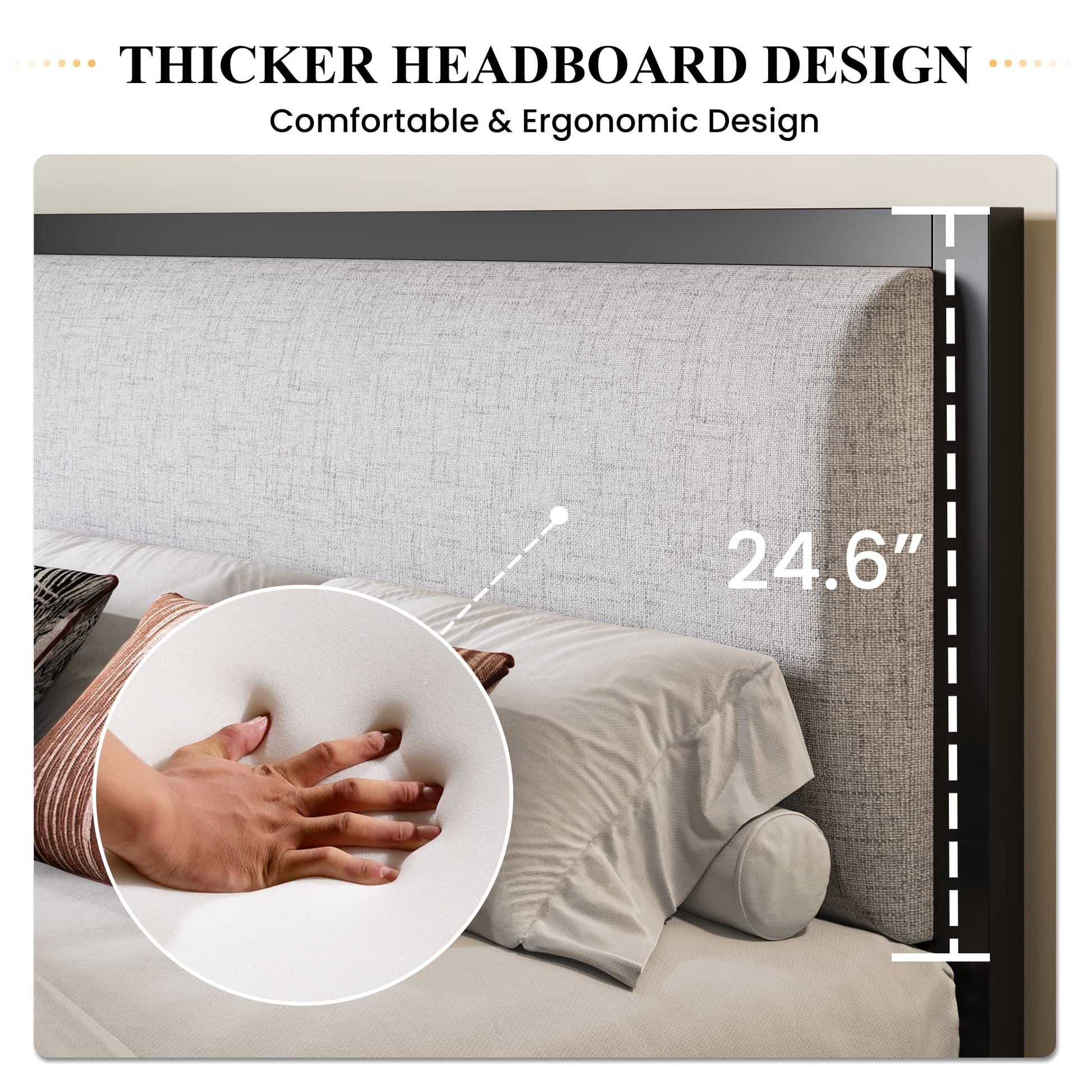 - SKIN-FRIENDLY & COMFORTABLE: The king bed skin-friendly material headboard with built-in high resilience memory sponge, so you can lean back and read and watch TV more comfortably. It's the perfect place to lean back and unwind after a long day, ensuring a restful night's sleep.