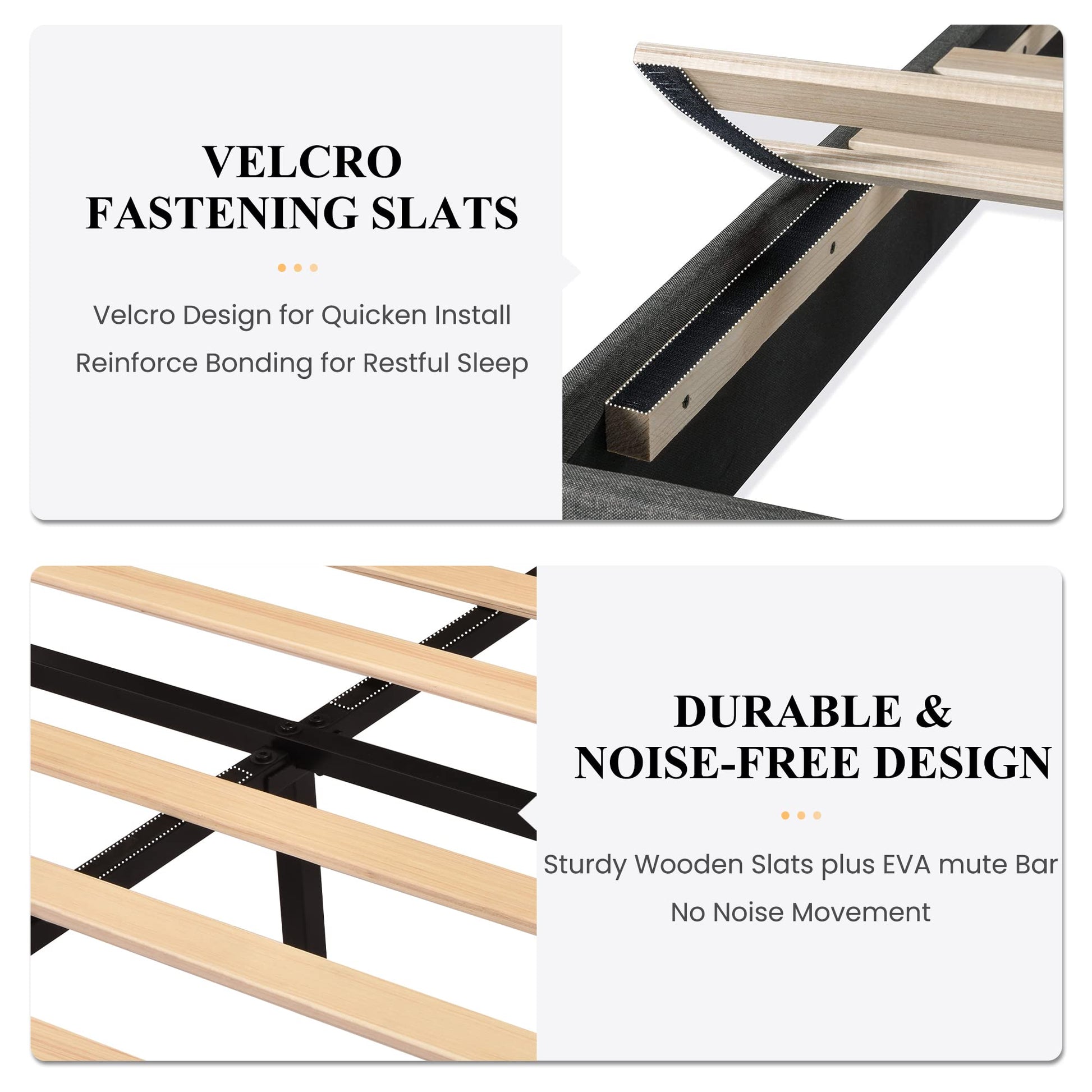 - SOFT & COMFORT: The headboard of the queen size bed frame is stylish because made of skin-friendly and breathable polyester fabric upholstery with dense foam padding.