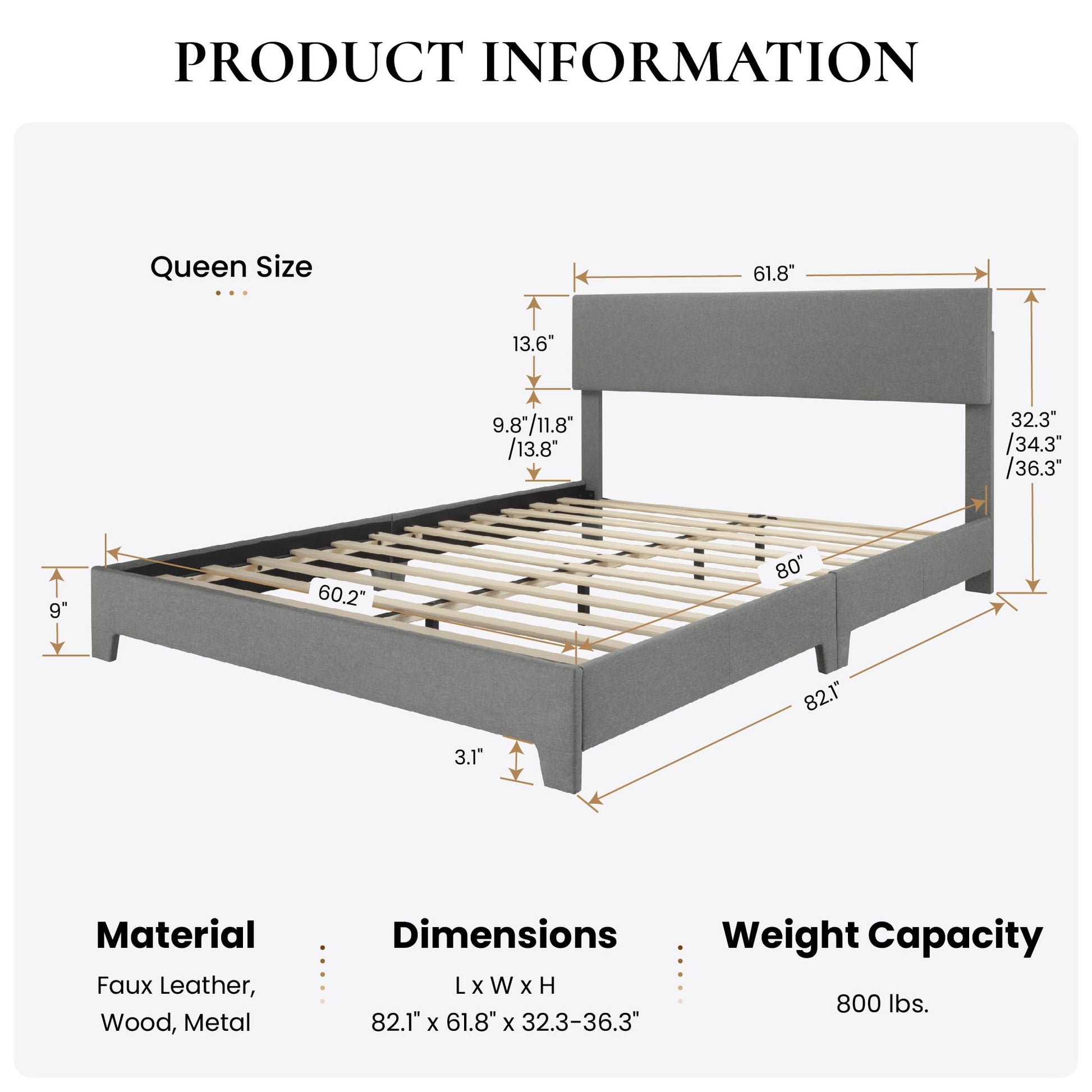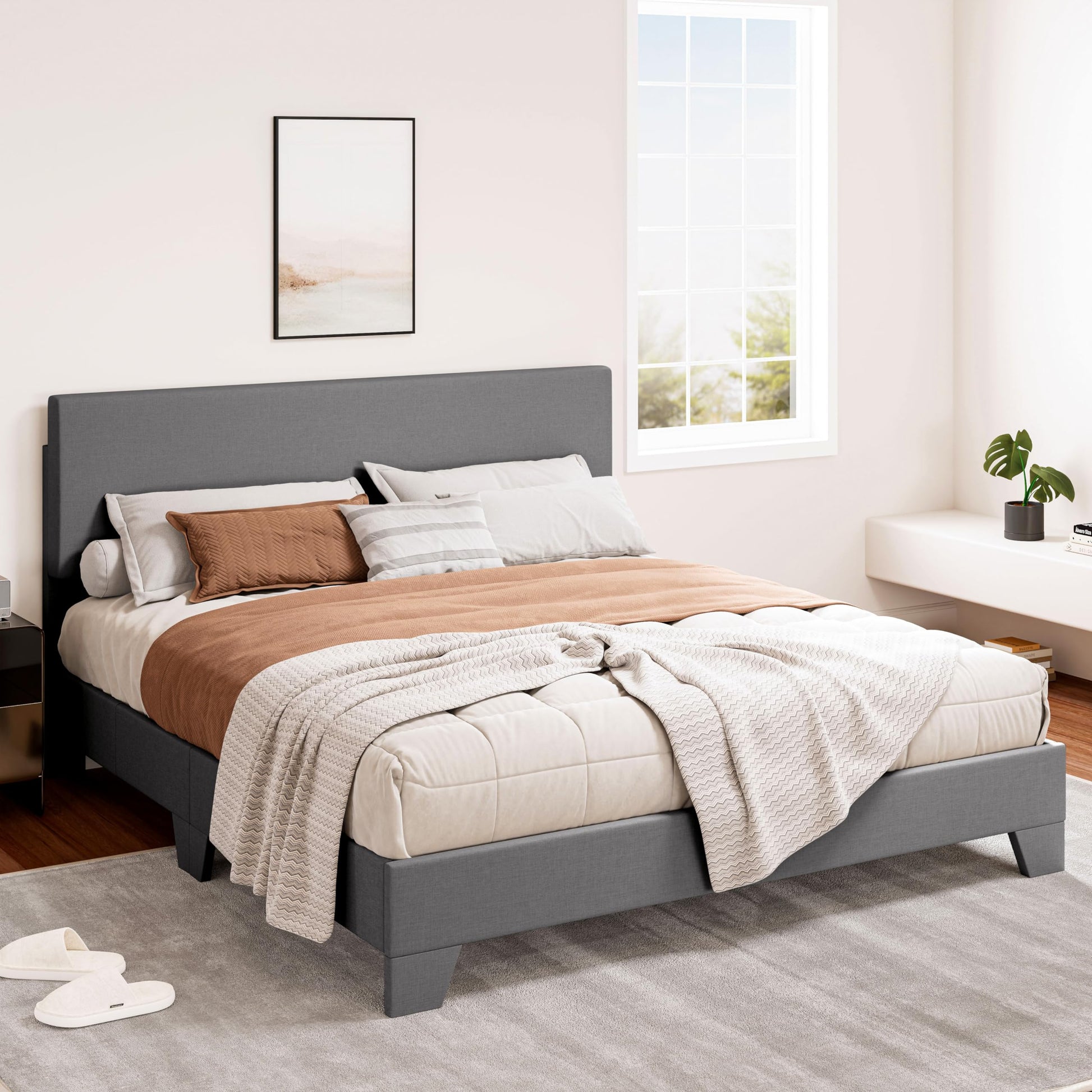 Queen Size Platform Bed Frame with Clean Line Fabric & Adjustable Headboard, Wood
