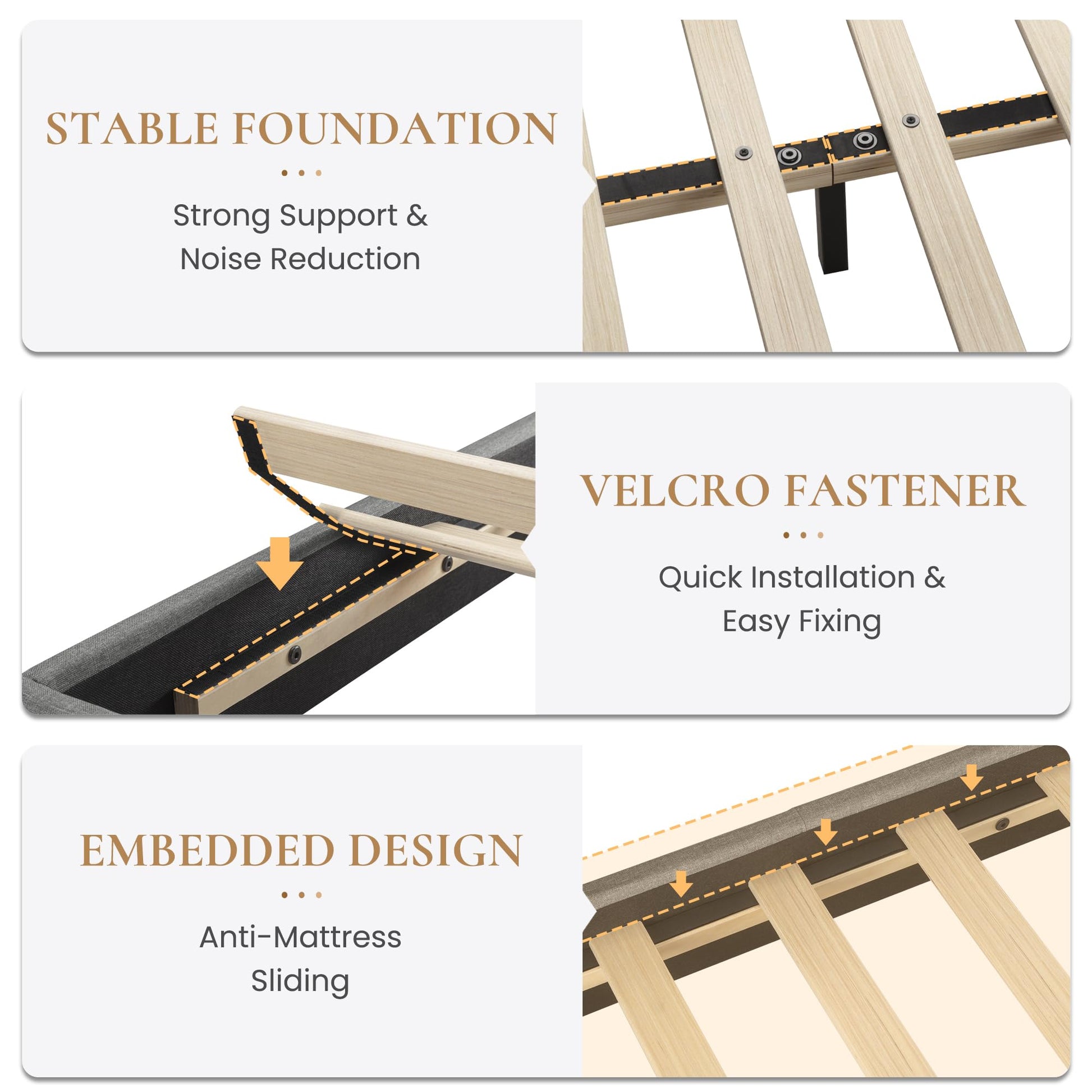 - Sturdy Construction: The bed frame is equipped with upgraded durable wood slats, which can provide 800 lbs. capacity and stable support.
