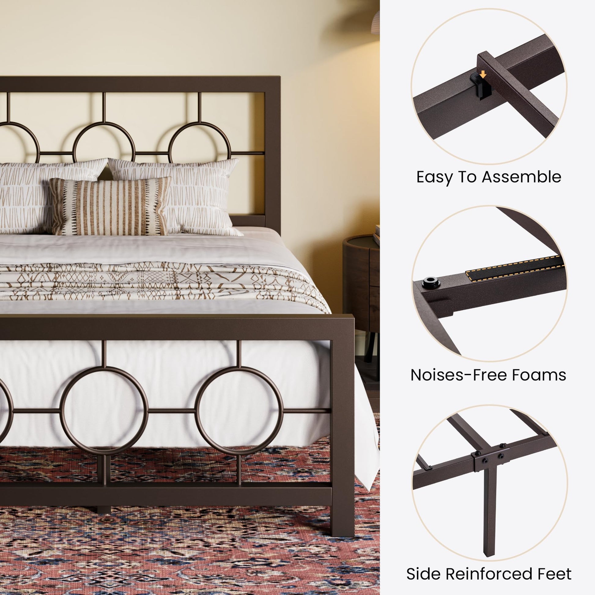 - PEACEFUL NIGHTS Each metal bar features a noiseless design with silent pads , ensuring a stable and silent structure for the bed, creating a peaceful sleeping environment.