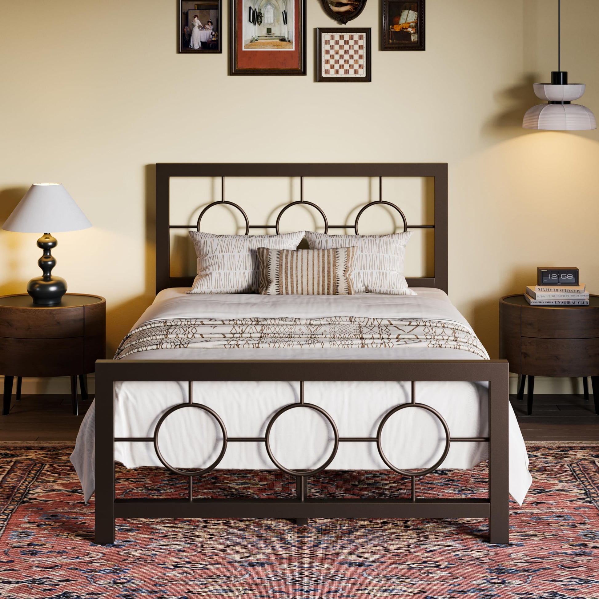 - VINTAGE & MODERN STYLES Our circular iron bed frame seamlessly combines vintage charm with contemporary design, creating an inviting atmosphere.