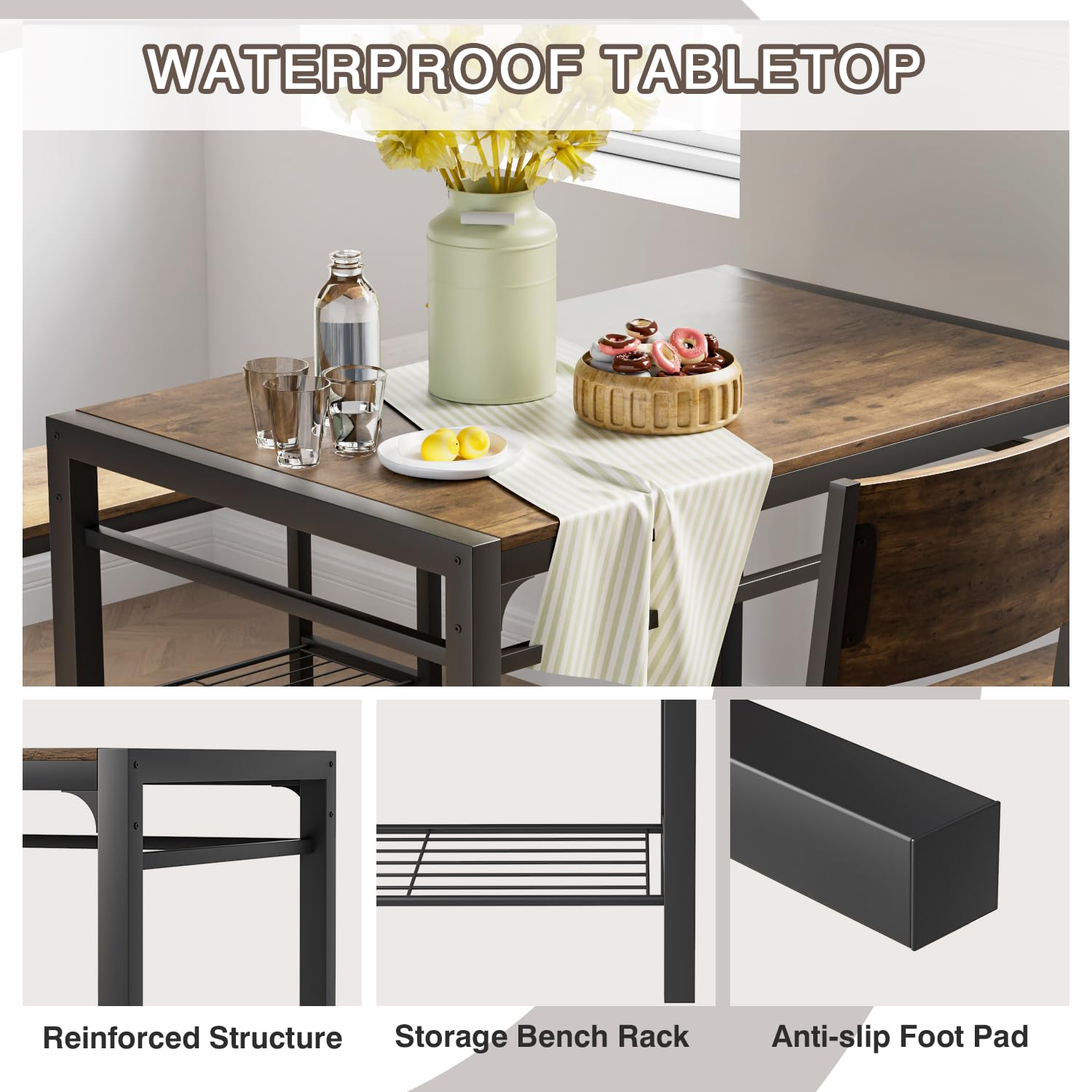 Kitchen Table and 2 Chairs for 4 with Bench, 4 Piece Dining Sets for Small Space