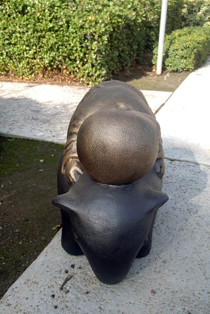 - Add a touch of serenity and whimsy to your outdoor space with this charming garden statue. Depicting a sleeping baby monk nestled peacefully atop a gentle baby elephant, this piece is sure to inspire tranquility and relaxation.