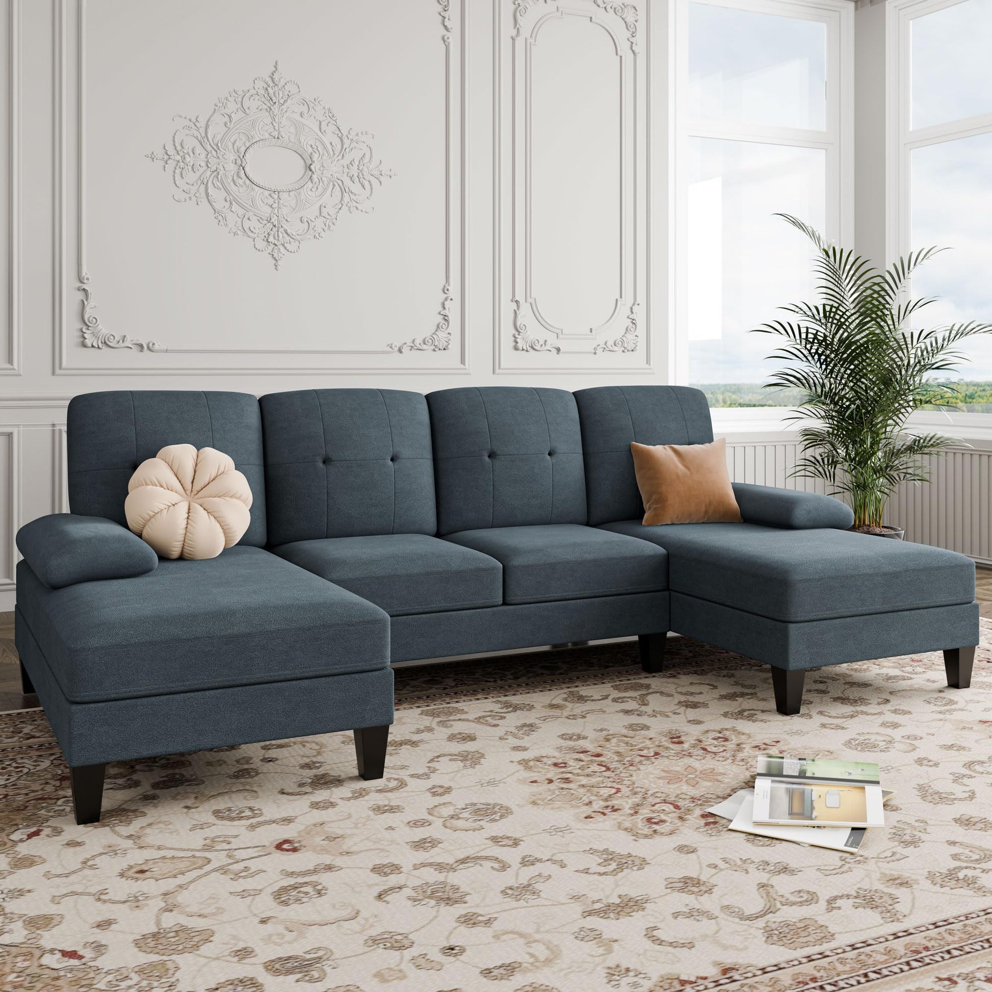 Sectional Sofa Couch, U-Shaped Sofa Couch with Double Chaise, 4-Seat Sleeper Sofa