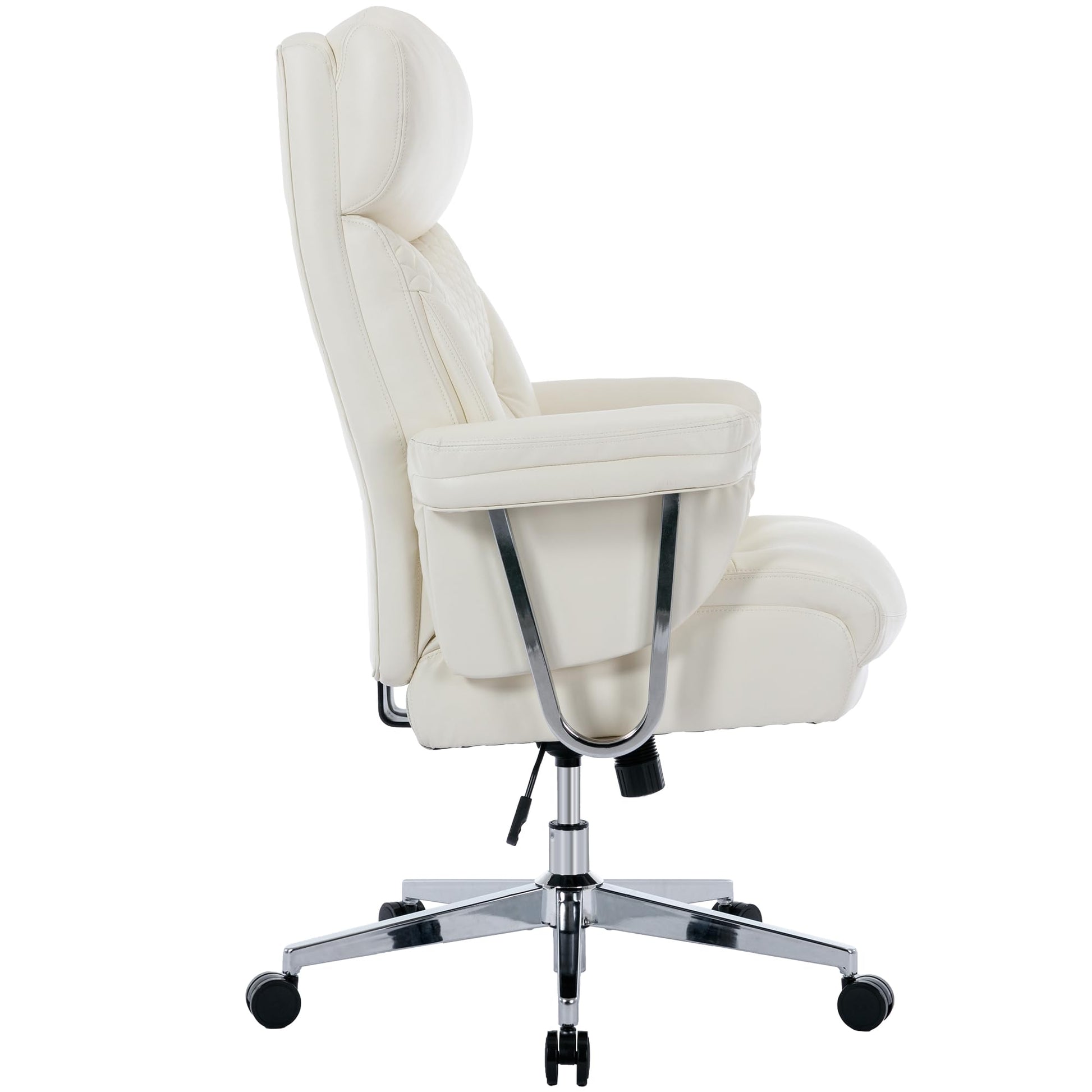 - The backrest and seat cushion of this executive office chair is made of high-density sponge cushion, which is not only comfortable but also softly padded. The exterior of the office chair is wrapped in breathable PU leather, which is simple and elegant overall and easy to clean.