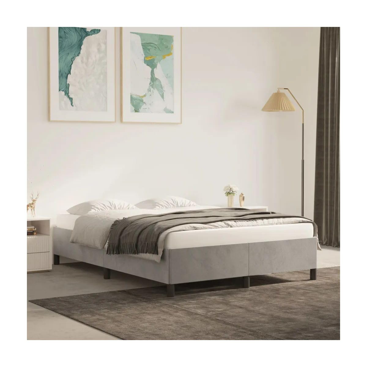 SHZG Bed Frame Light Gray 53.9"X74.8" Full Velvet 347354