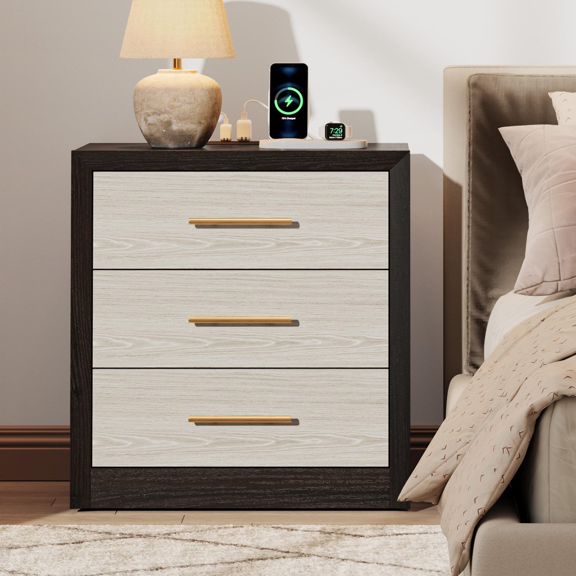 - SICOTAS 2 pack nightstand with charging station boasting 2 AC outlets, 1 USB port, and 1 USB-C port for fast charging, catering to your everyday charging needs. Additionally, nightstands with 3 full-sized drawers effortlessly meets all your daily storage needs. Keep your cherished items neatly organized in its roomy interior.
