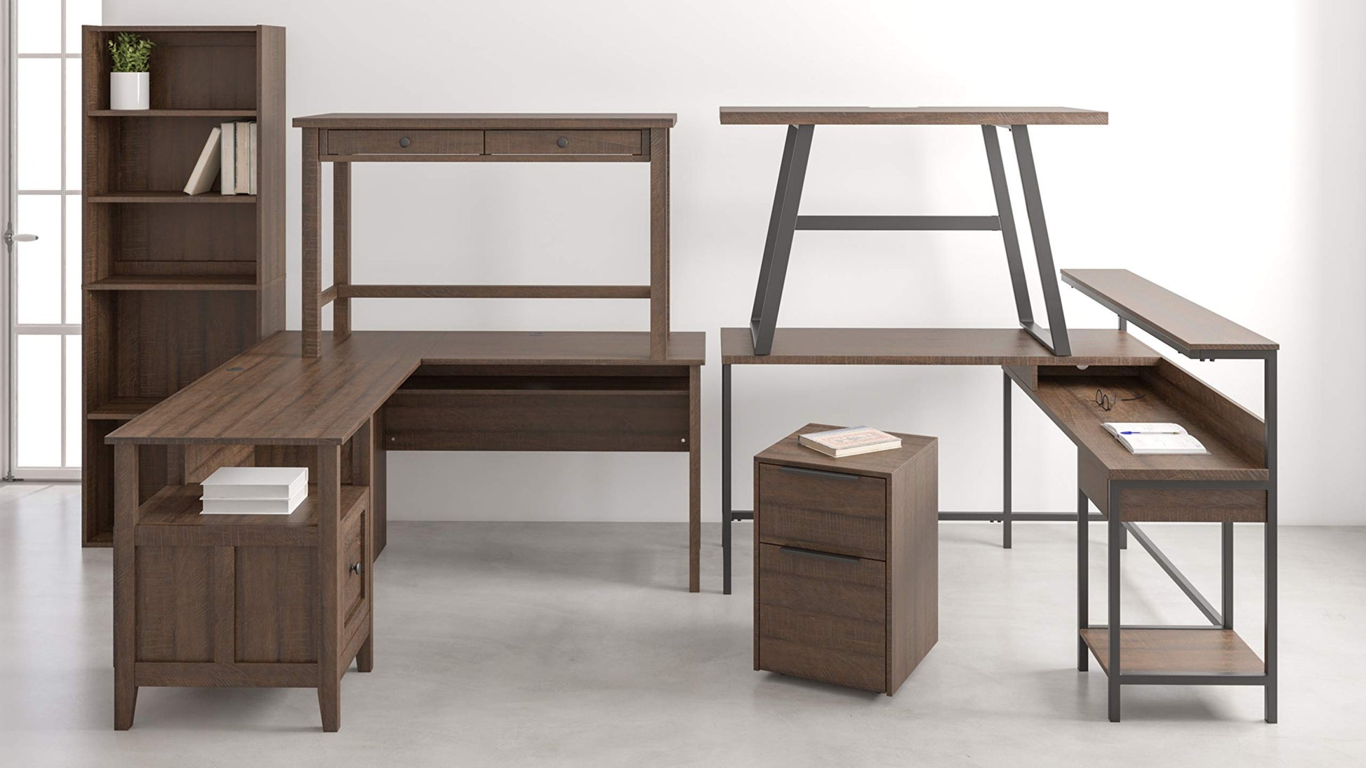 - RICHLY CRAFTED: With the corner on style, this desk made of decorative laminate and engineered wood melds modern farmhouse design with an urban attitude for a cool look in small space furniture