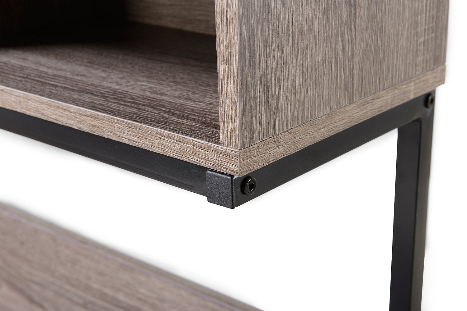 - HANDSOMELY CRAFTED: Made of engineered wood and metal with a grayish-brown wood finish and gunmetal finish base. Designed to accommodate small spaces as well as large open spaces