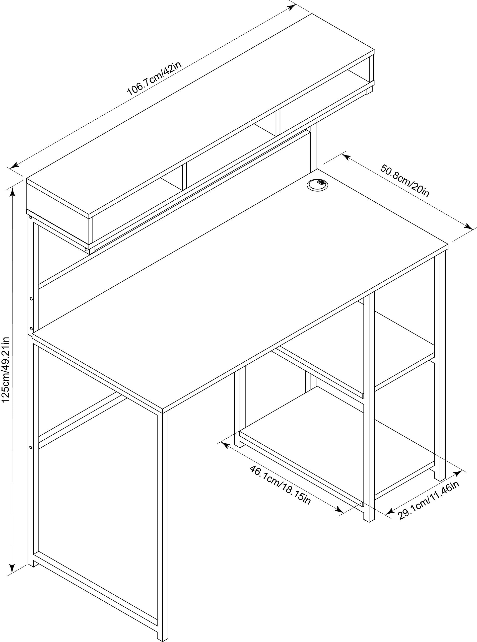 Daylicrew Urban Industrial 42" Home Office Desk & Hutch