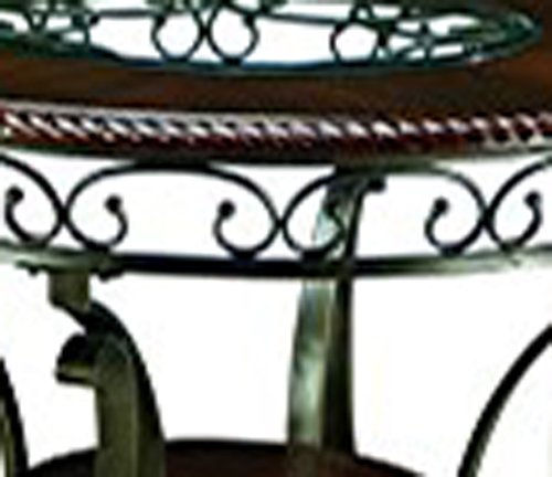 - OLD WORLD STYLE DINING ROOM TABLE: A mix of scrolling metal legs and accents, dark wood-finishes and an inset glass tabletop, making this dining table an elegant addition to the dining room, kitchen or breakfast room. Seats up to four