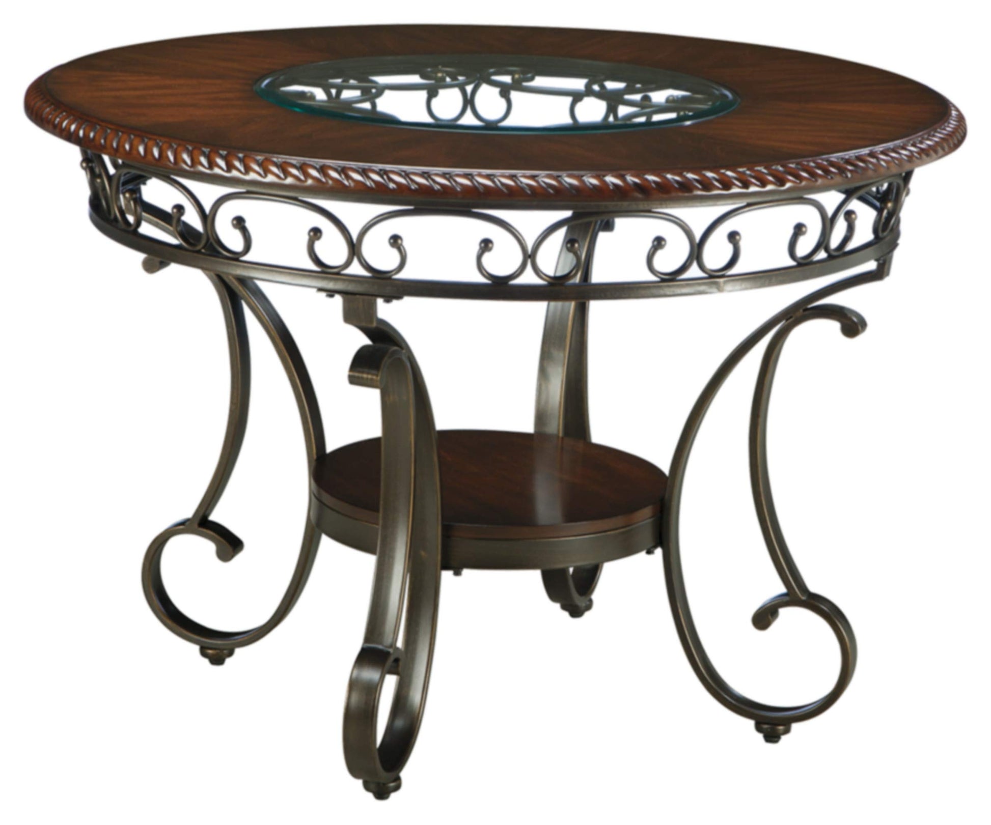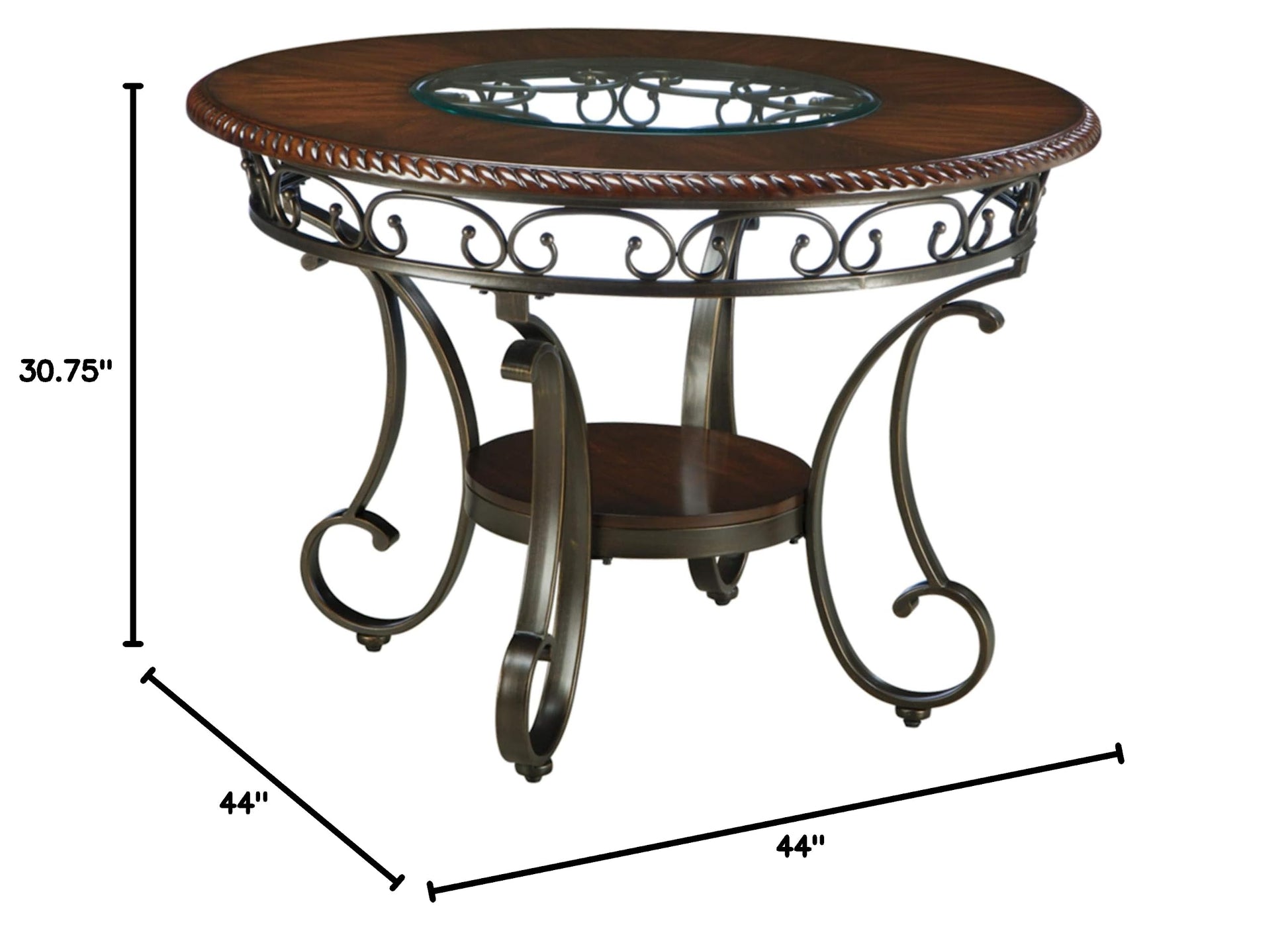 Glambrey Old World 45" Round Glass Top Dining Table, Brown