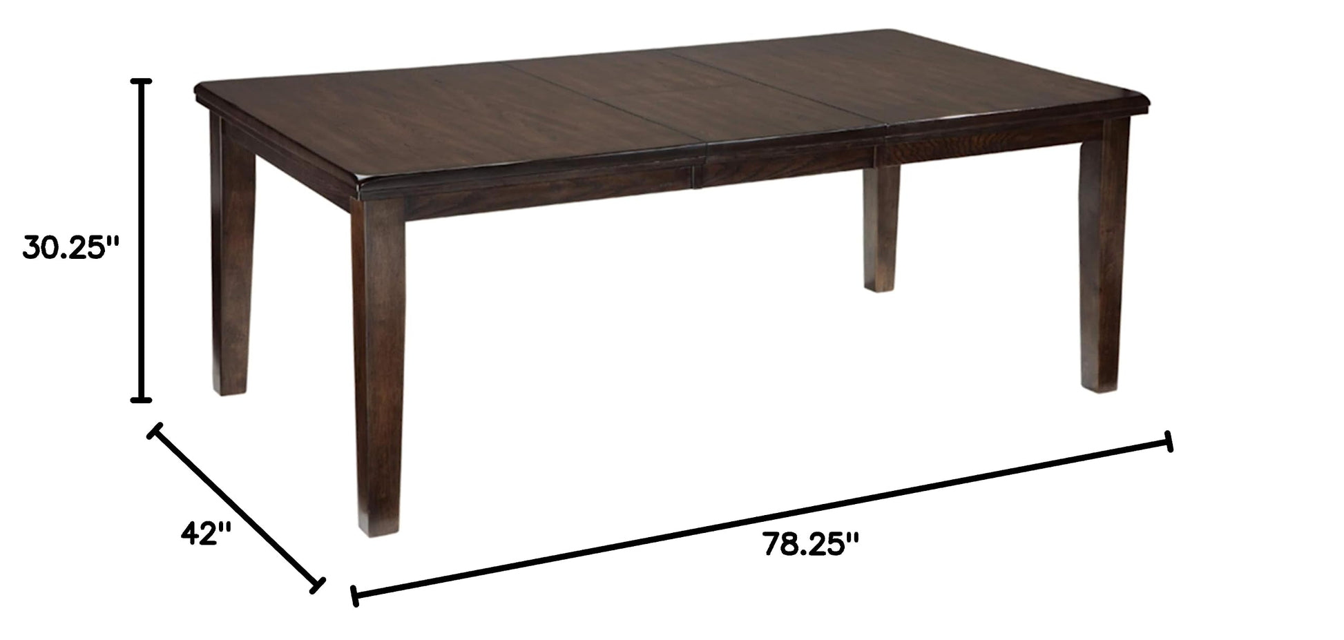 - EXTENSION TABLE: Measures 42" W x 78.25" D x 30.25" H with butterfly leaf extension to seat up to eight comfortably. Table measures 42" W x 63" D x 30.25" H without leaf