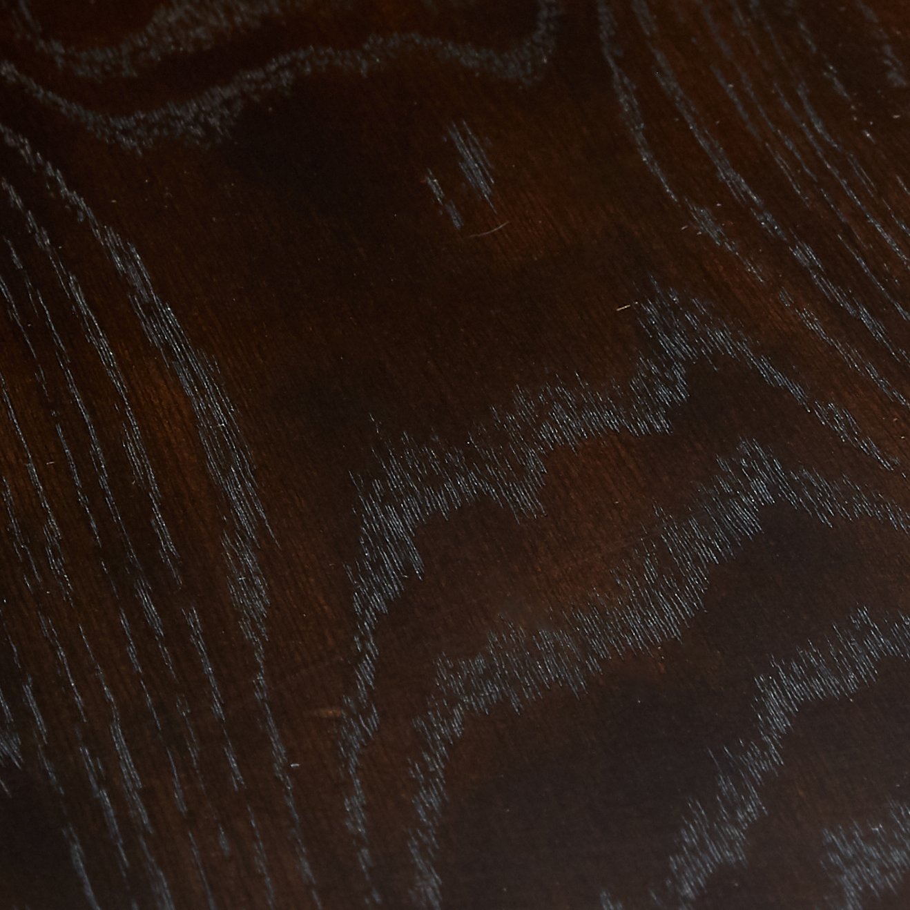 - HANDSOMELY CRAFTED: This dining room table made with select oak veneer and hardwood solids with a dry smoky dark brown oak finish. Edges and corners have a rounded off, worn effect for a casual look