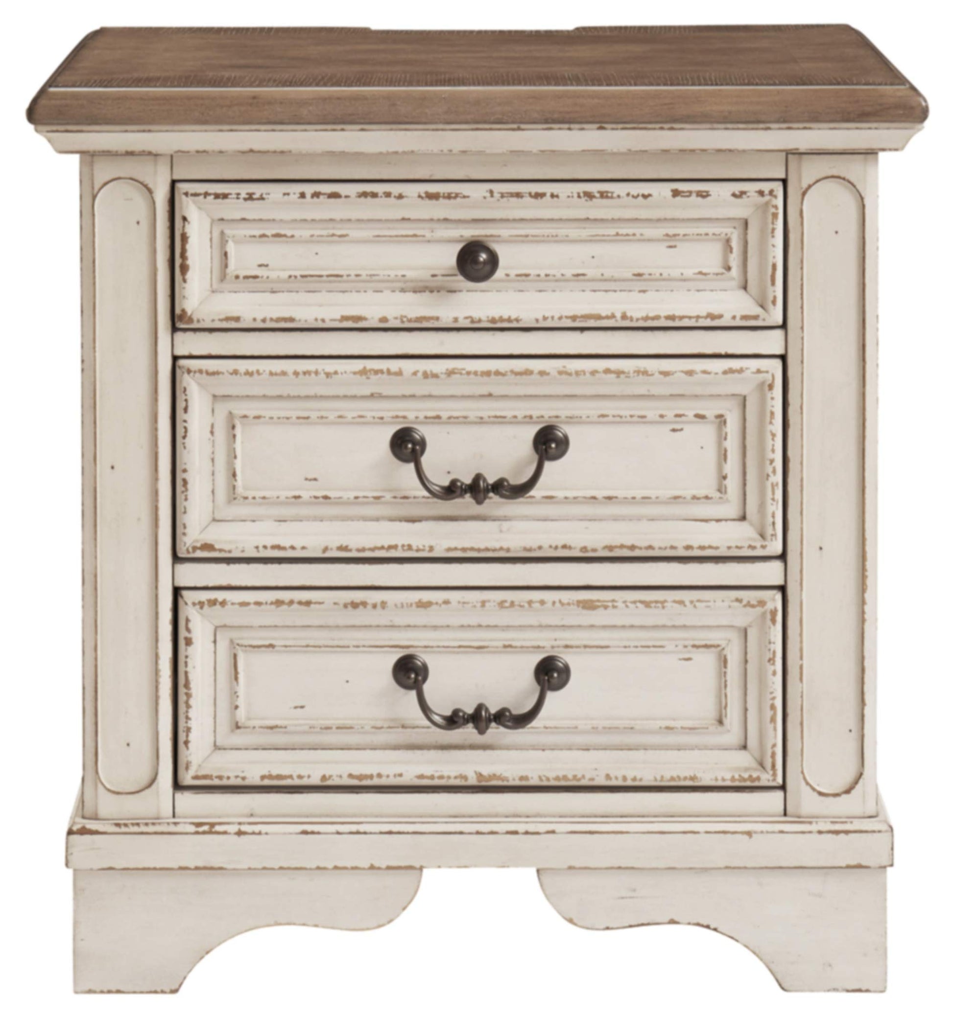 Realyn French Country 3 Drawer Nightstand, Chipped White & Realyn Traditional Cottage
