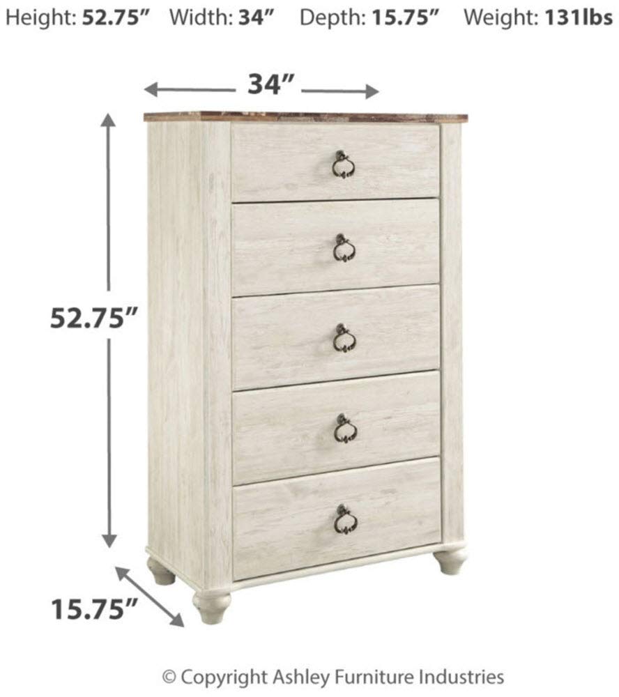 Willowton 5 Drawer Chest of Drawers, Two-tone Brown and Whitewash