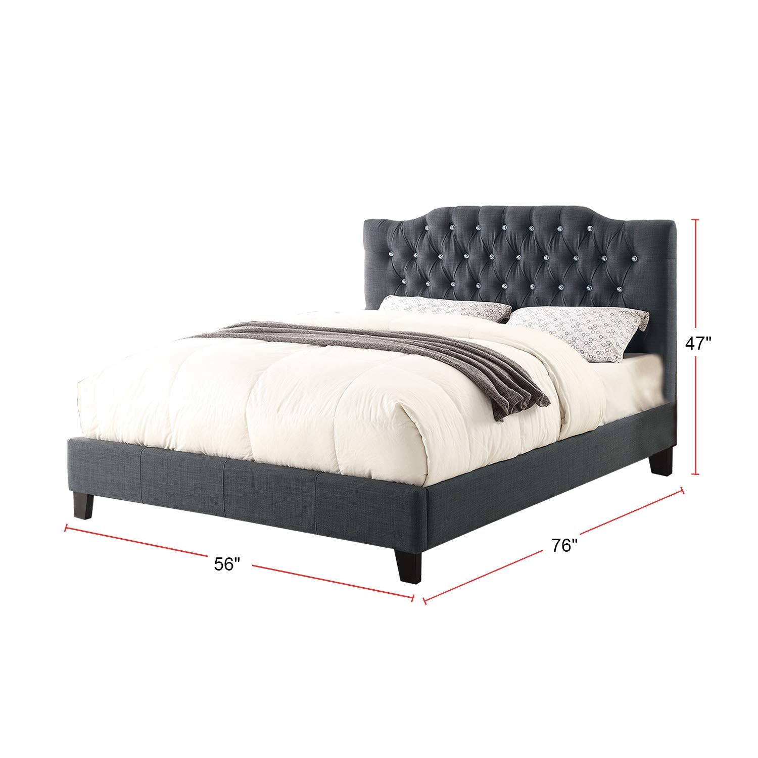 Blue Grey Polyfiber Upholstered Full Size Bed
