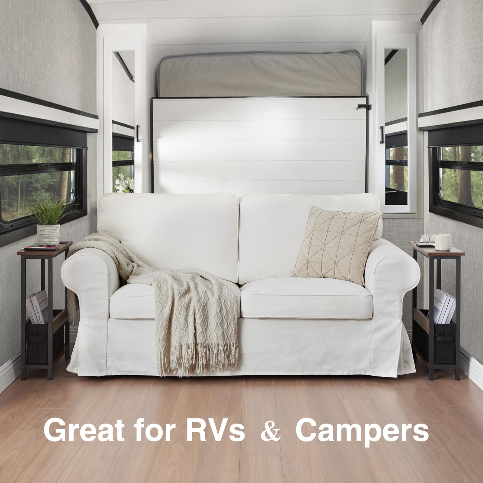 Slim Charging End Table with Storage - For Small Spaces and Bedroom