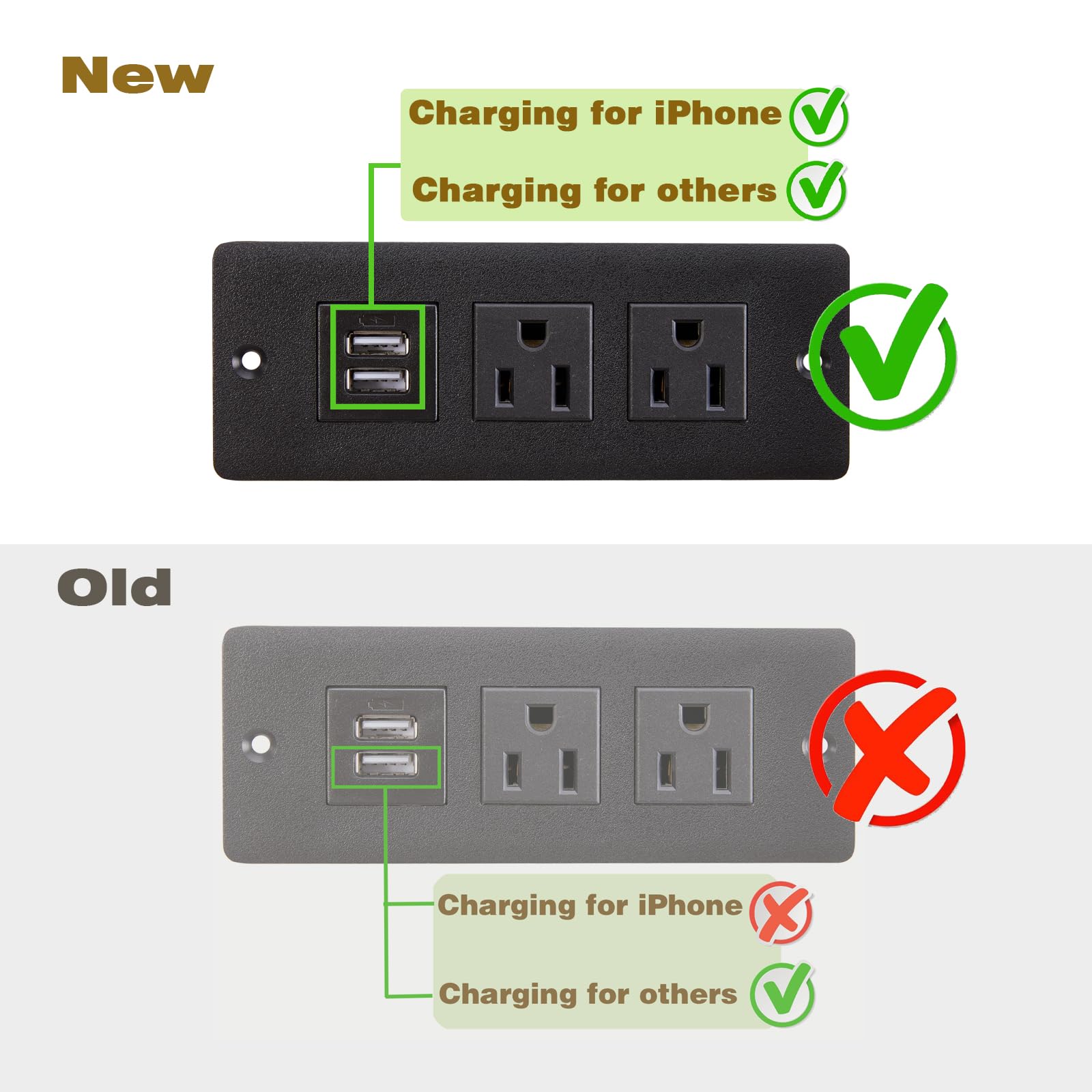 - End Table with USB Ports and Outlets: Whether it's a bedside nightstand or a side table, the charging station with 2 outlets and 2 USB ports on the top makes it easy to charge your phones or other devices without getting off the couch, or bed. The cord length is 4.9 feet. NOTE: We have optimized the charging settings of the usb port and will no longer have the issue of some phones being unable to charge. Please refer to the image for details