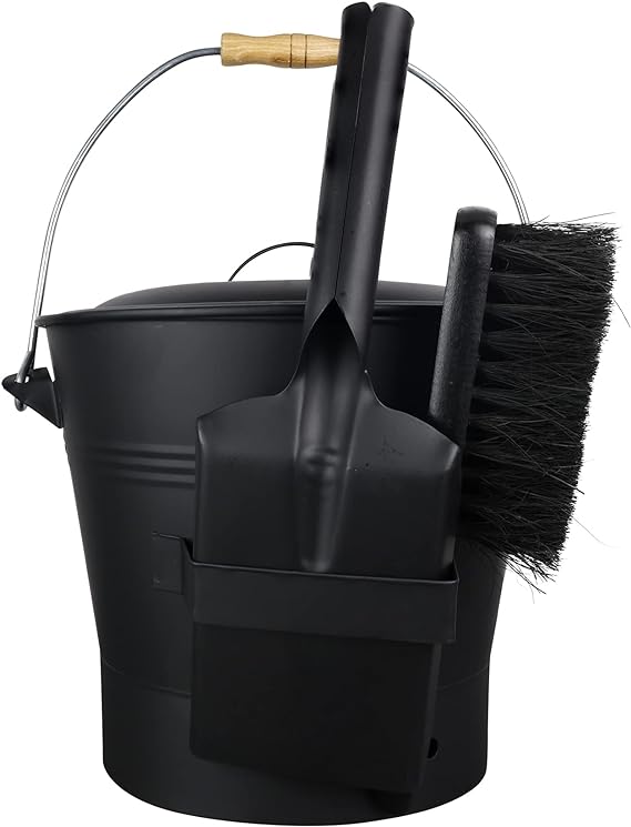 - Excellent for Easy Cleanup-On the side of your coal bucket, there’s a specifically designed pocket for the ash shovel and brush. Altogether, these covered ash bucket and fire stove tools help you remove embers and dispose of wood burning debris.