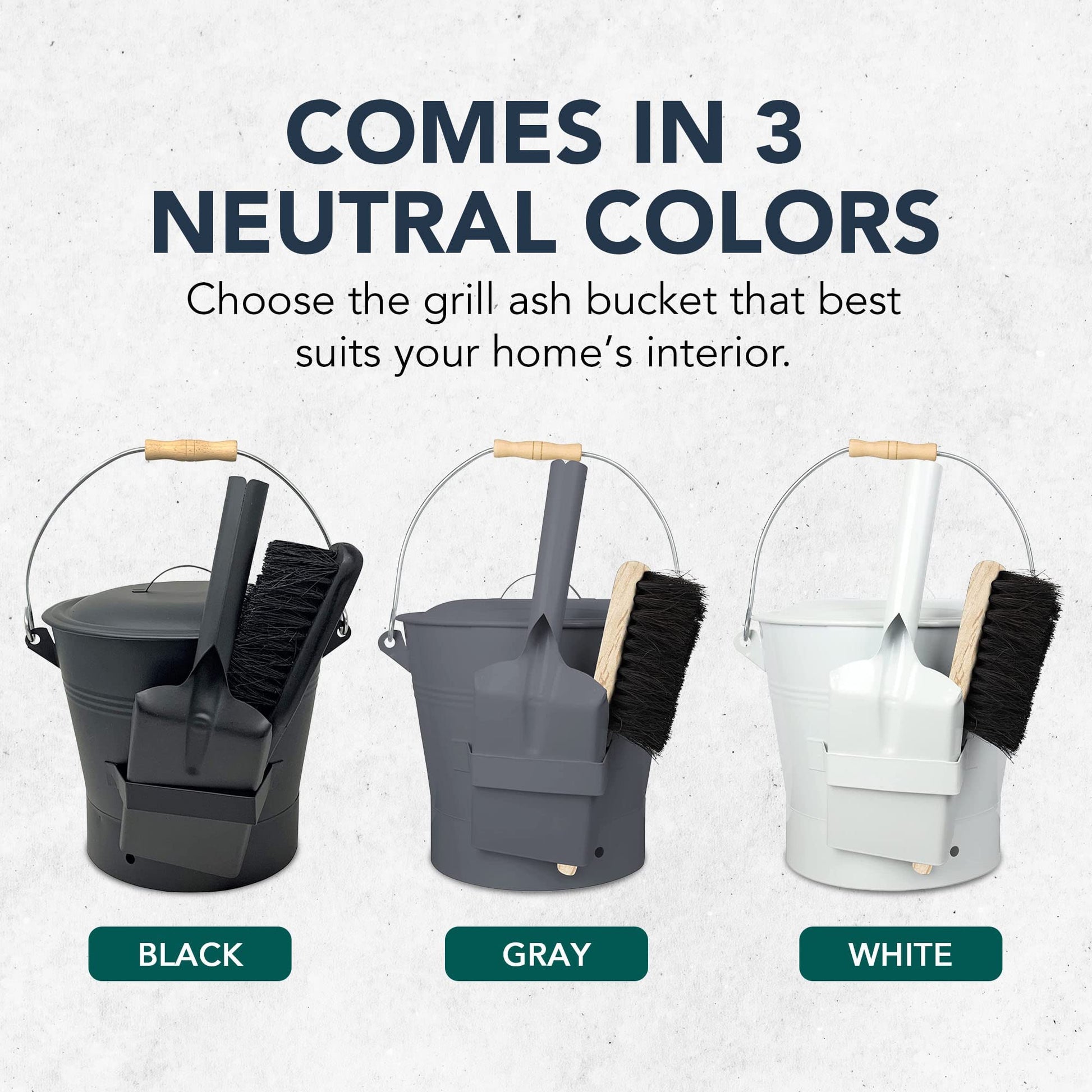 - Charcoal Bucket Comes in 3 Neutral Colors-Smedley & York’s durable metal bucket with lid is available in white, black, and gray. Choose the grill fire ash bucket that best suits your home’s interior.
