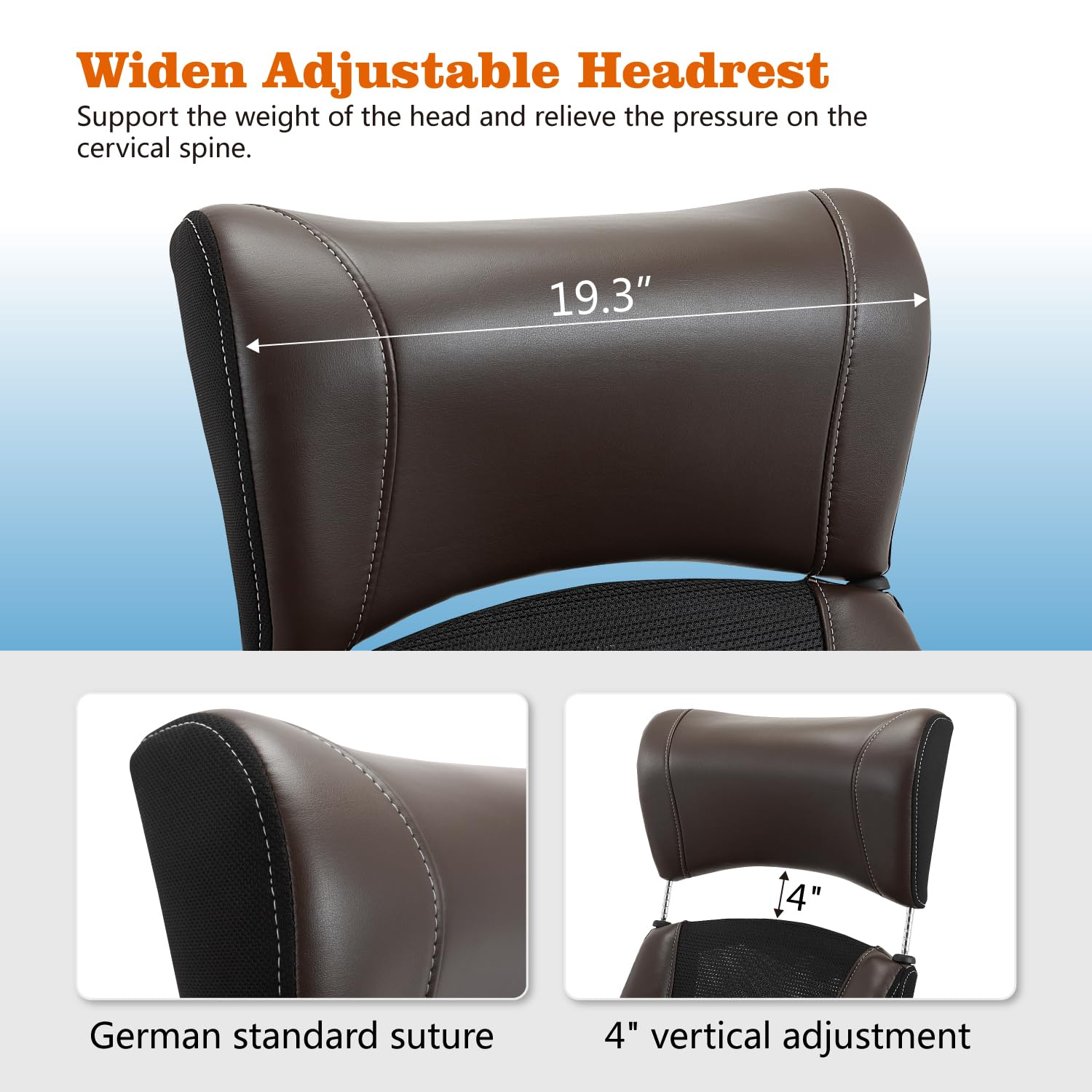 - Adjustable Support: The Ergonomic Desk Chair offers comprehensive adjustability to promote proper posture and reducing discomfort even during prolonged use. The headrest is height-adjustable, allowing you to find the perfect position to support your neck and upper back. It provides lumbar support to maintain the natural curve of your spine and alleviate strain on your lower back. The backrest can be reclined up to 45°, enabling you to relax and recline whenever without compromising on support.