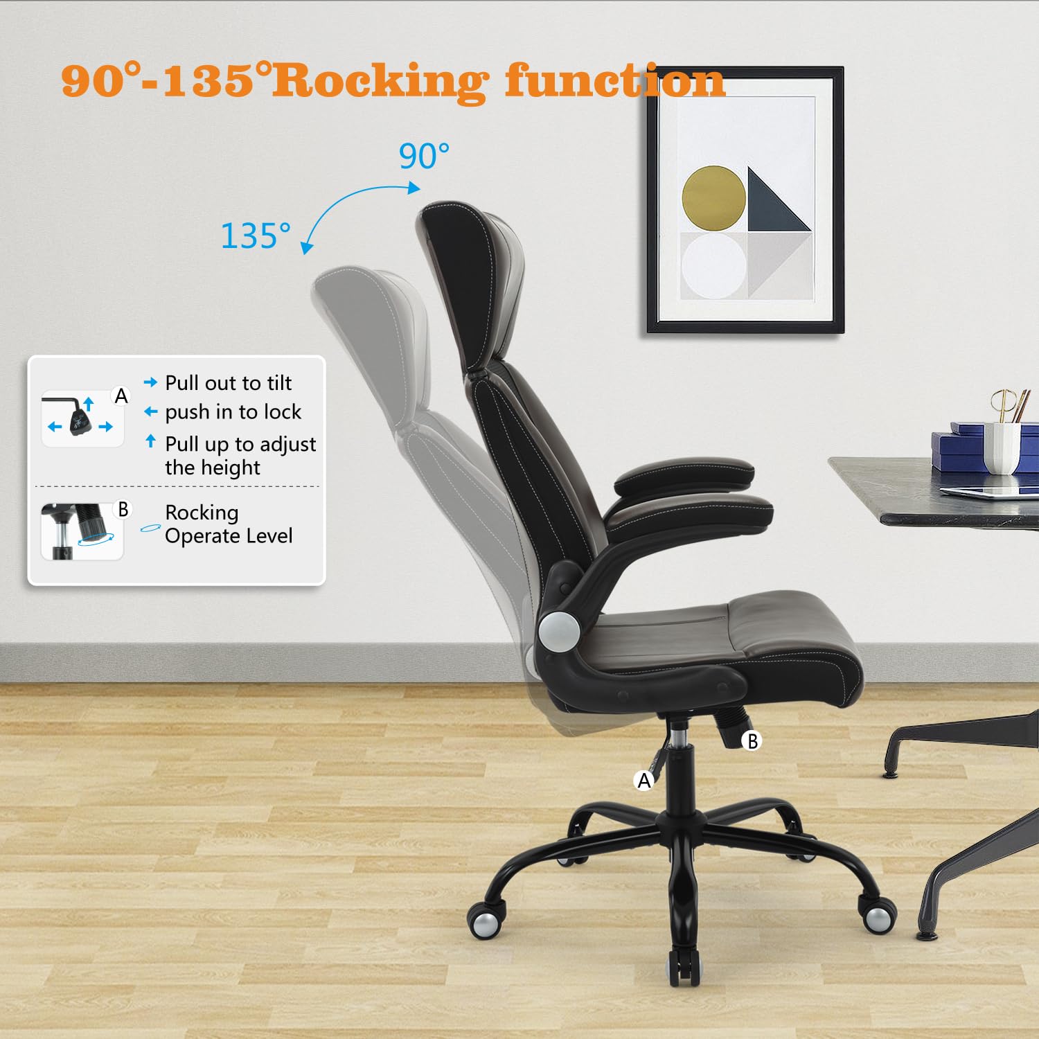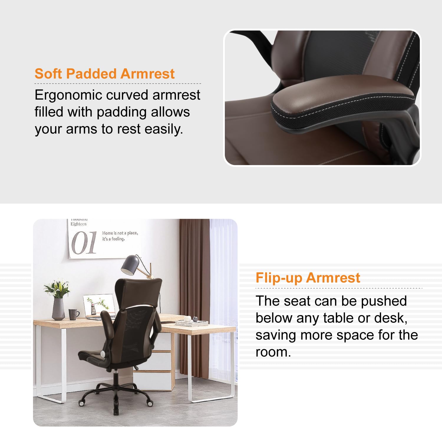 - Space-Saving Design: Efficiency meets functionality with the space-saving design of this office chair. The flip-up armrests offer the flexibility to adjust your seating arrangement to suit various tasks, making it easier to move closer to your desk or store it neatly under table when not in use. This feature is particularly advantageous in compact workspaces or multi-purpose rooms. By seamlessly integrating practicality with comfort, the chair ensures optimal utilization of your office area.
