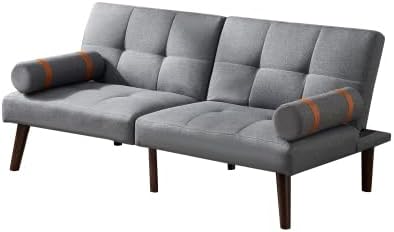 Sofa Bed, Linen Upholstered Modern Convertible Futon with Removable Armrests