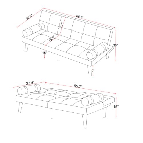 - IDEAL FOR SMALL SPACES: Enjoy the functionality of a full-size sofa in a flat or dorm room without unnecessary bulk, with compact dimensions suitable for use in studios, flats, offices or game rooms, or as a guest bed for visitors. Multi-purpose and more in tune with modern living. Sofa size: L 65.7" x W 32.2" x H 30". Dimensions when unfolded as a futon: 65.7 "L x 37.4 "W x 15 "H.