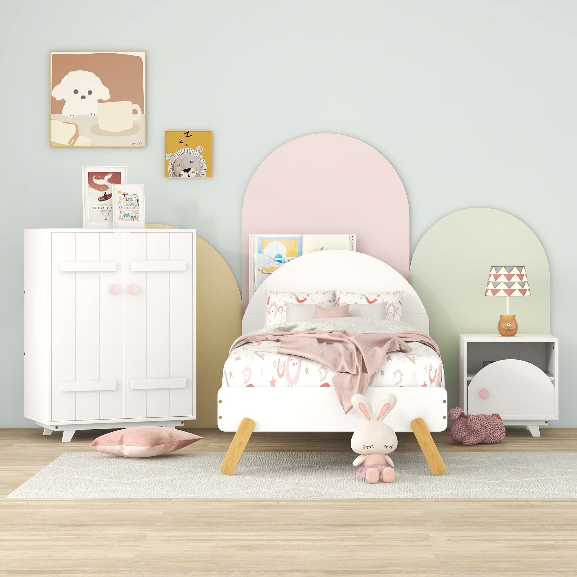 3-Piece Kids Bedroom Furniture Set Include Twin Cute Platform Bed Frame