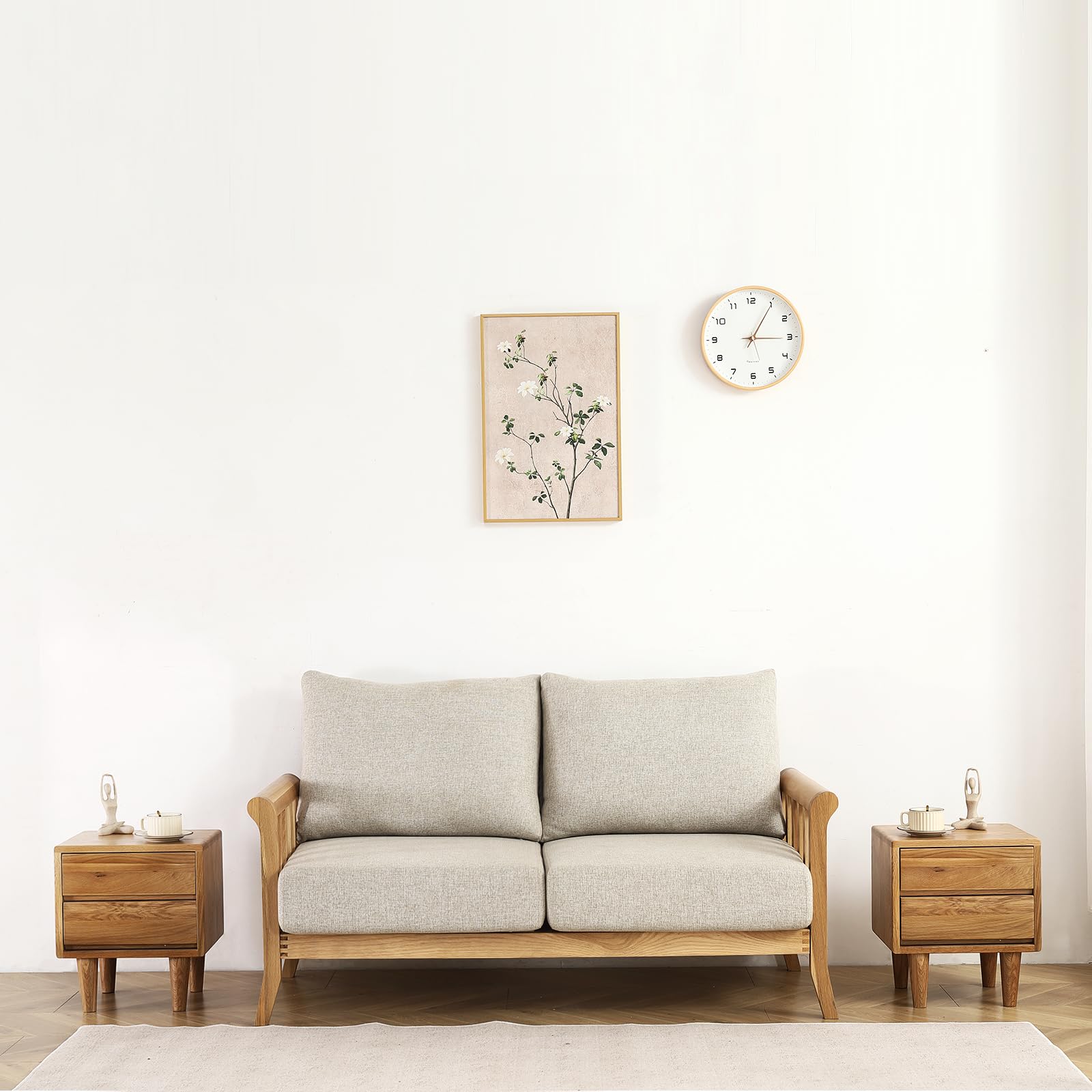 Oak Wood Nightstand, Bedside Table with 2 Drawer, Mid-Century Luxury Night Stand