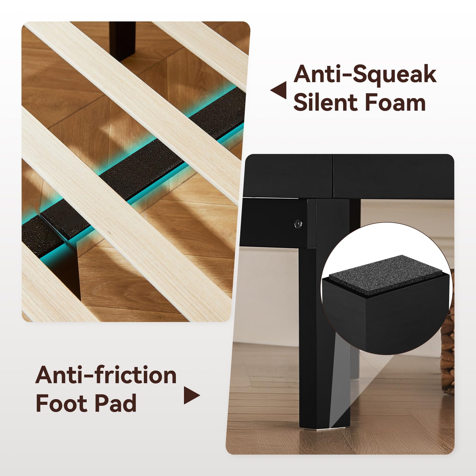 Built for lasting comfort and stability, the heavy-duty construction includes 12 reinforced wood slats that provide exceptional mattress support without requiring a box spring. The noiseless design ensures peaceful, uninterrupted sleep night after night.