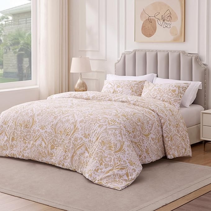 Willam Damask 3 Pieces Comforter Set Queen Size, Cotton Fabric with Microfiber Inner Fill