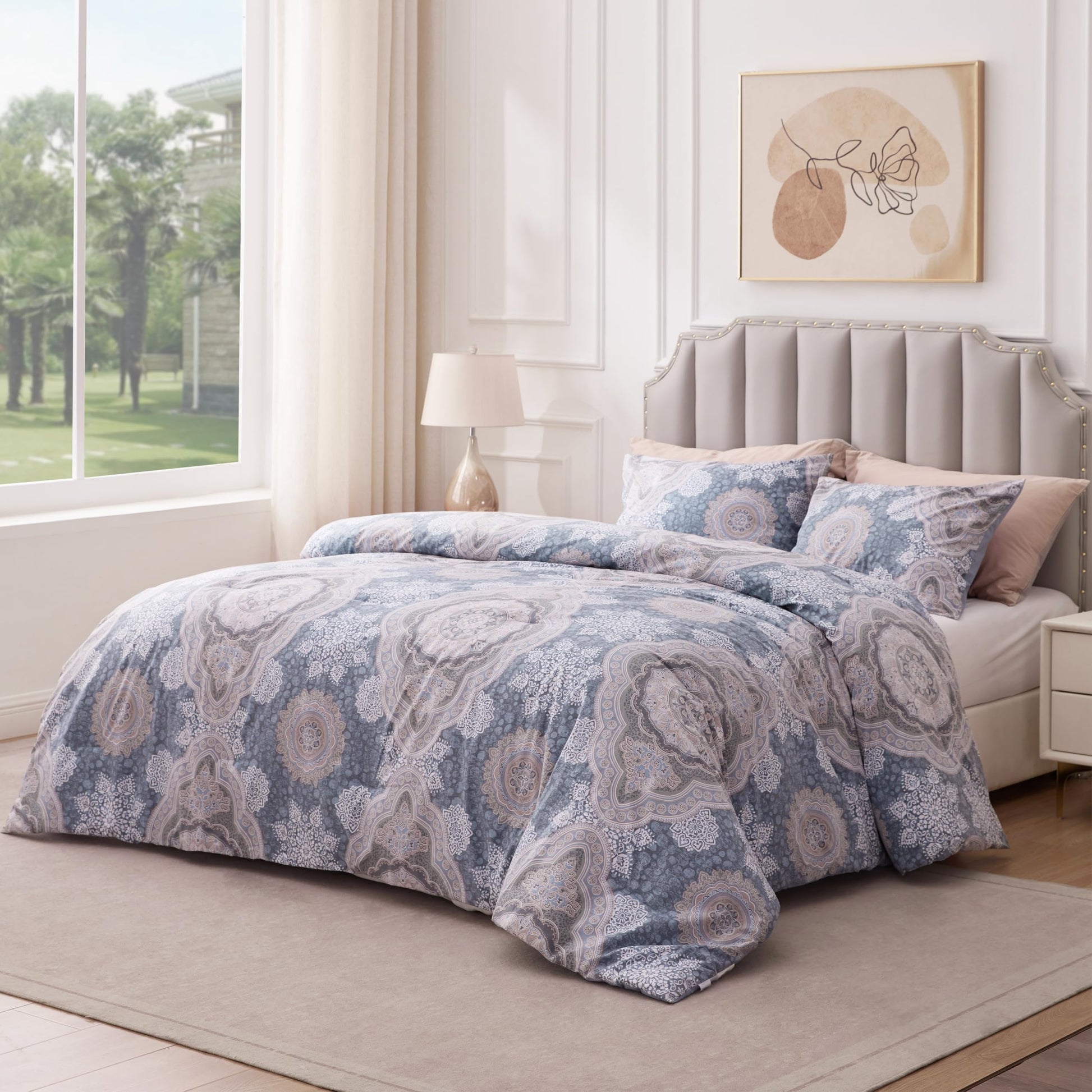 - 100% Cotton Outer Cover Fabric: This comforter set features a 100% cotton outer cover that offers a soft touch while allowing for breathability. It’s skin-friendly, providing a gentle touch against your skin while being lightweight, making it perfect for all seasons and keeping you cozy through the night