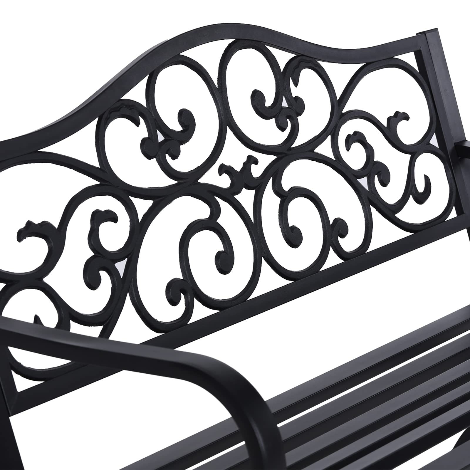 - Elegant Design: The lively and exquisite vines embellishments of the garden bench are distributed on backrest and make whole metal bench look beautiful, slatted seat allows for easy cleaning and optimal support. The arched legs are more stable and distinctive. Non-slip foot caps protect the floor from scratching