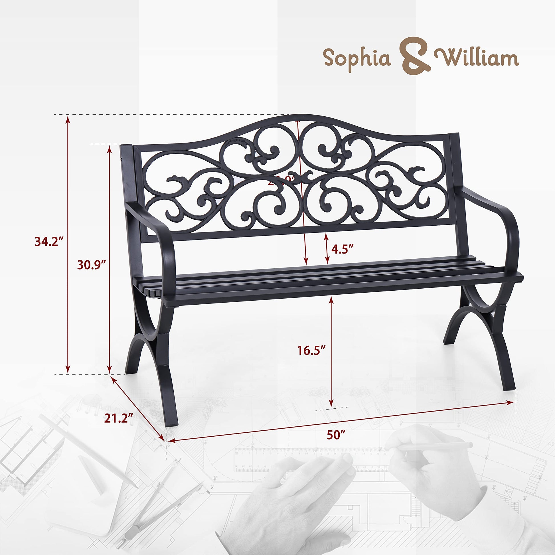 - Comfortable: The patio park bench can sit comfortably for up to 3 people with the wide and deep seat: 50.2”W x 16.3”D and 500lbs weight capacity. The slightly curved seat and armrests can perfectly fit in human body's curvature, relieving your tension and enhancing your comfort. The 16.5-inch height from seat to floor favors a relaxed pose for your legs