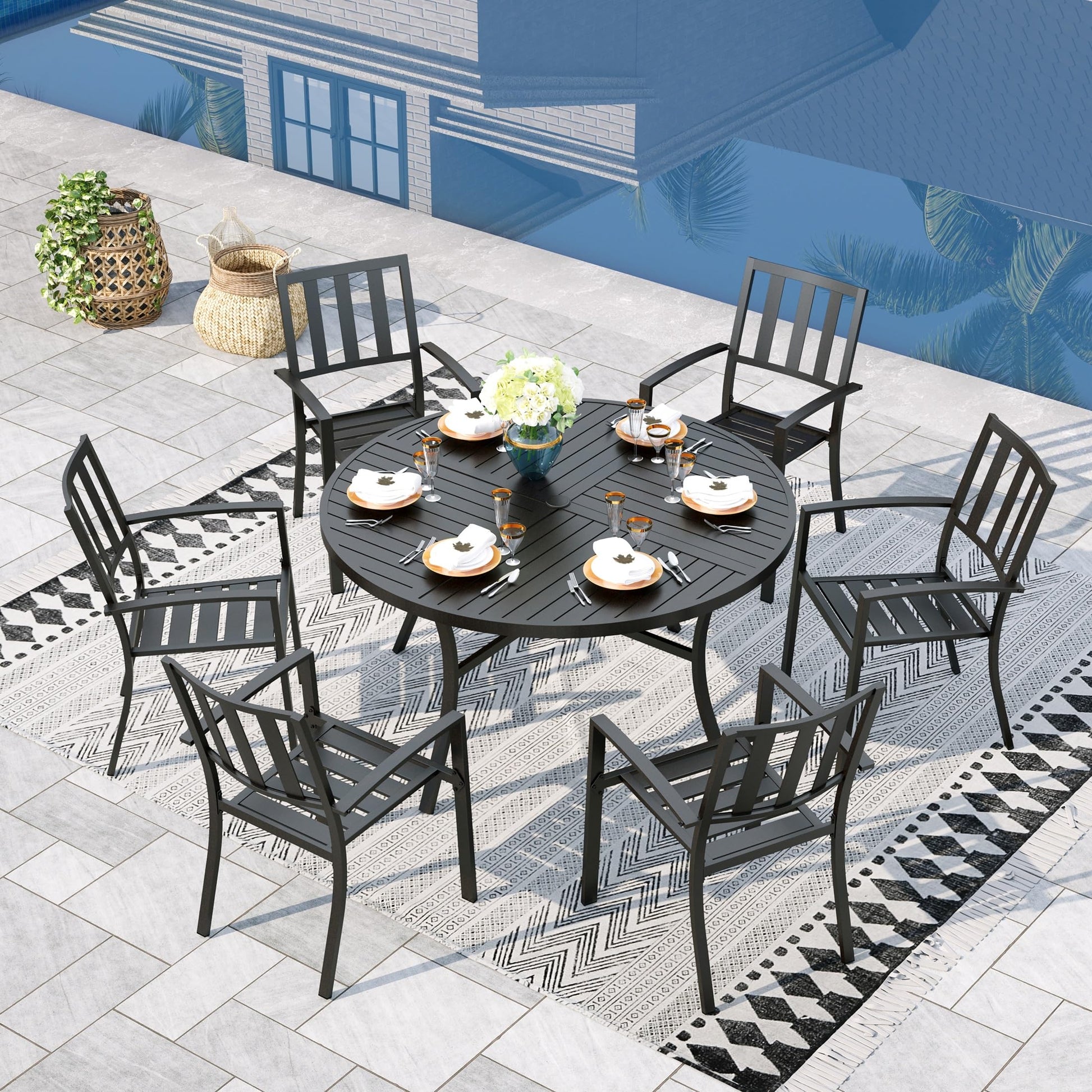 Round Patio Table and Chairs Set, Outdoor Dining Set for 6, 7 Piece Metal Patio Furniture