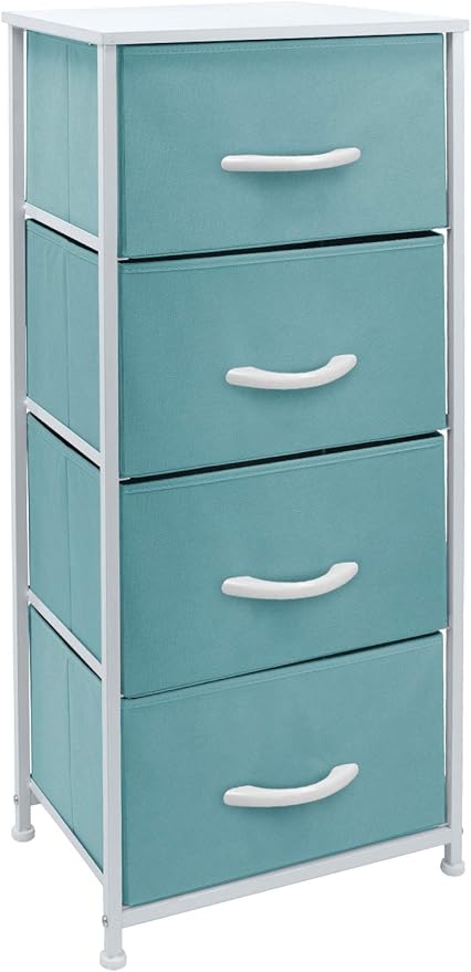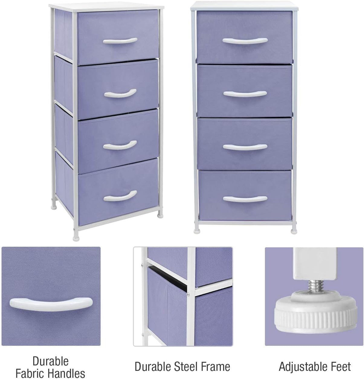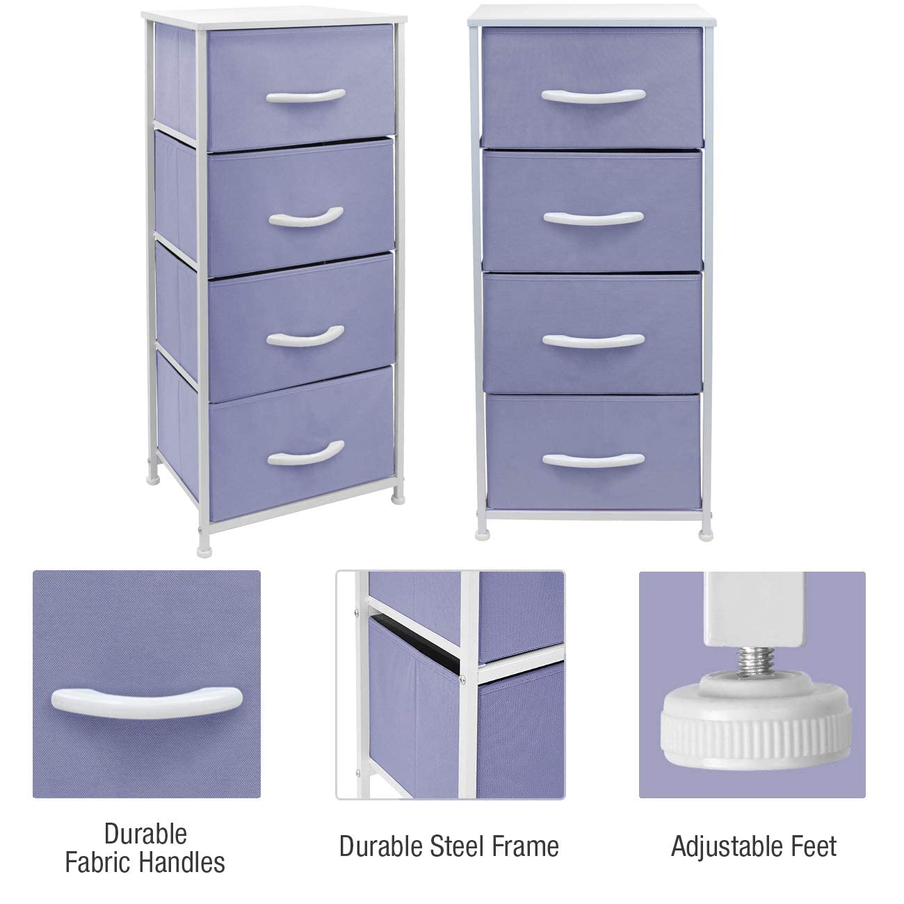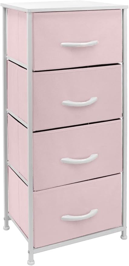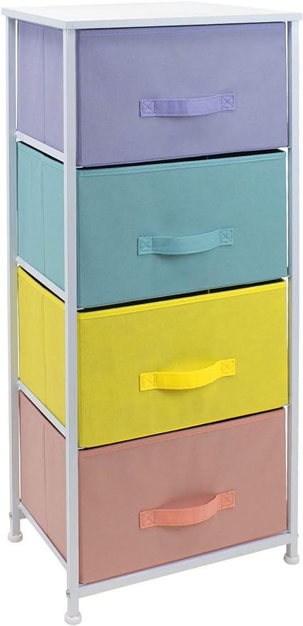 - KID-FRIENDLY DESIGN — Sleek vertical storage — Made with strong steel frame and durable MDF wood top with smooth white finish — Made of non-woven fabric — Wipe clean — Minimal assembly required — Hardware and instructions INCLUDED — Measures approximately 17.75” L x 11.87” W x 37.50” H - Drawers measure approximately 15 x 11 x 8 in