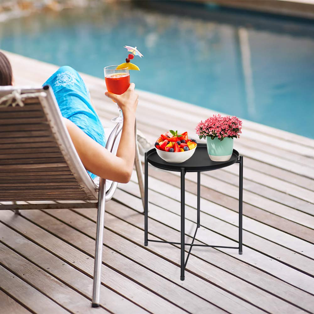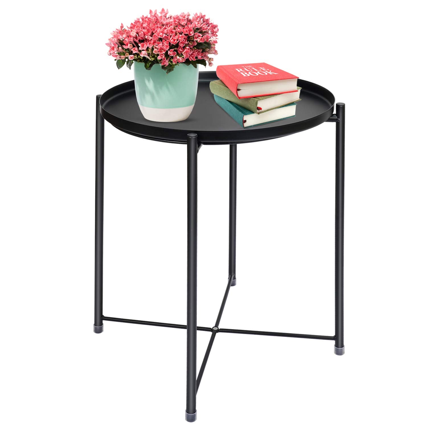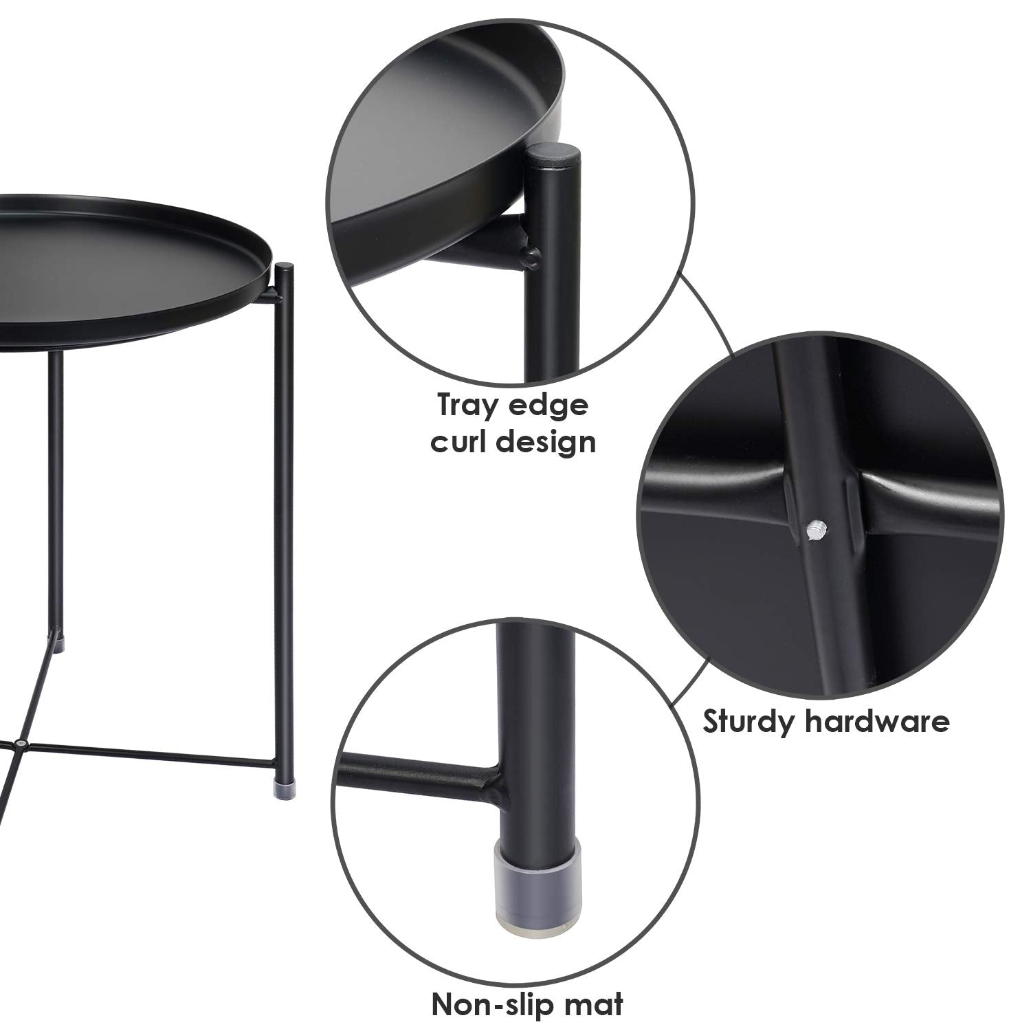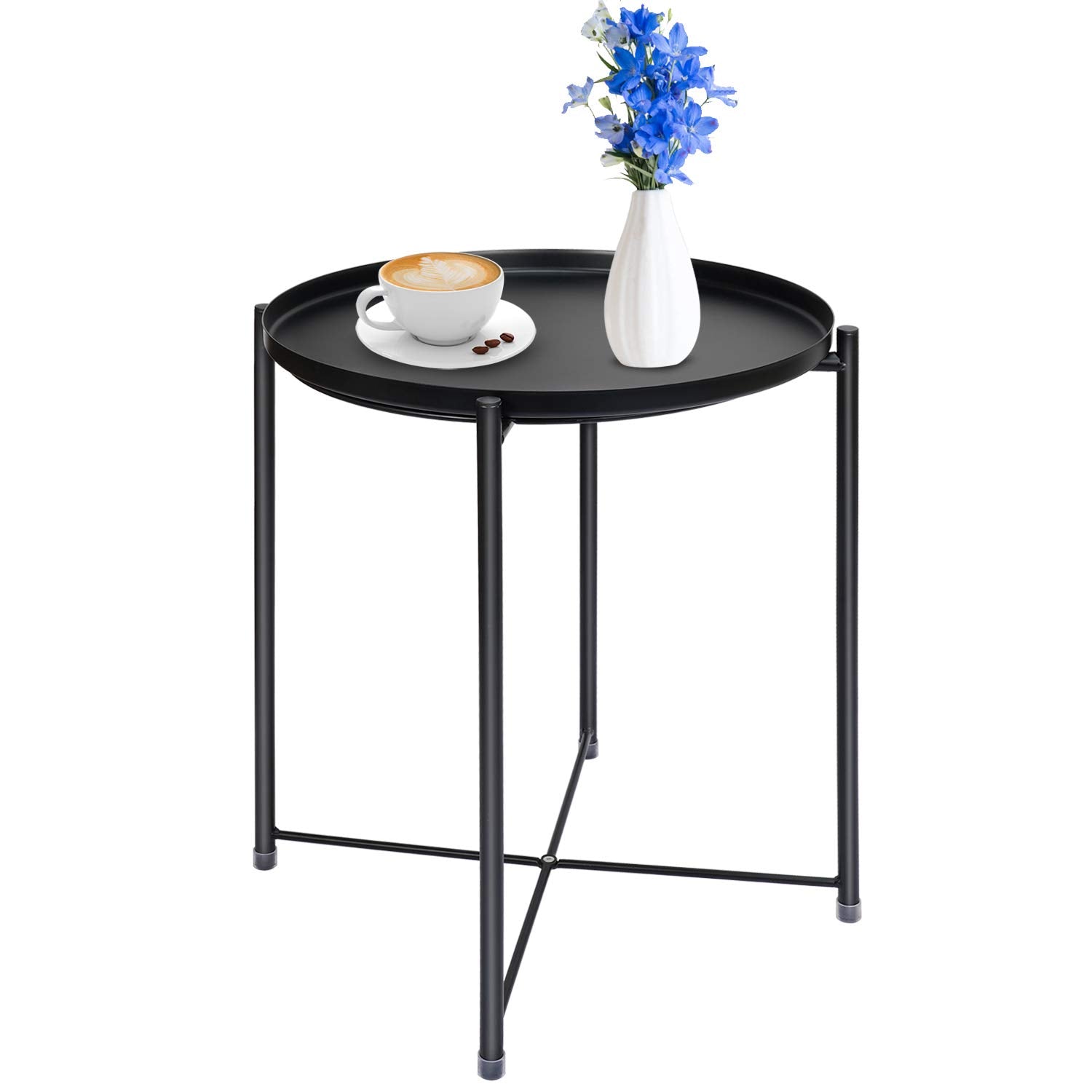 Tray Metal End Table, Foldable & Removable Round Side Tables