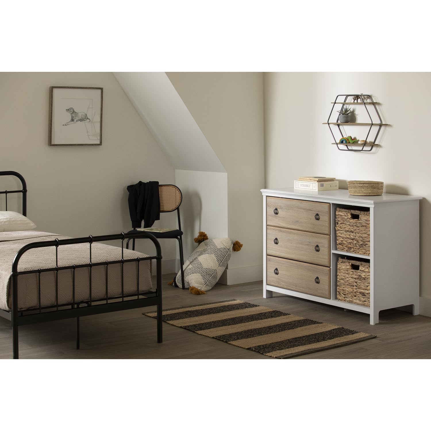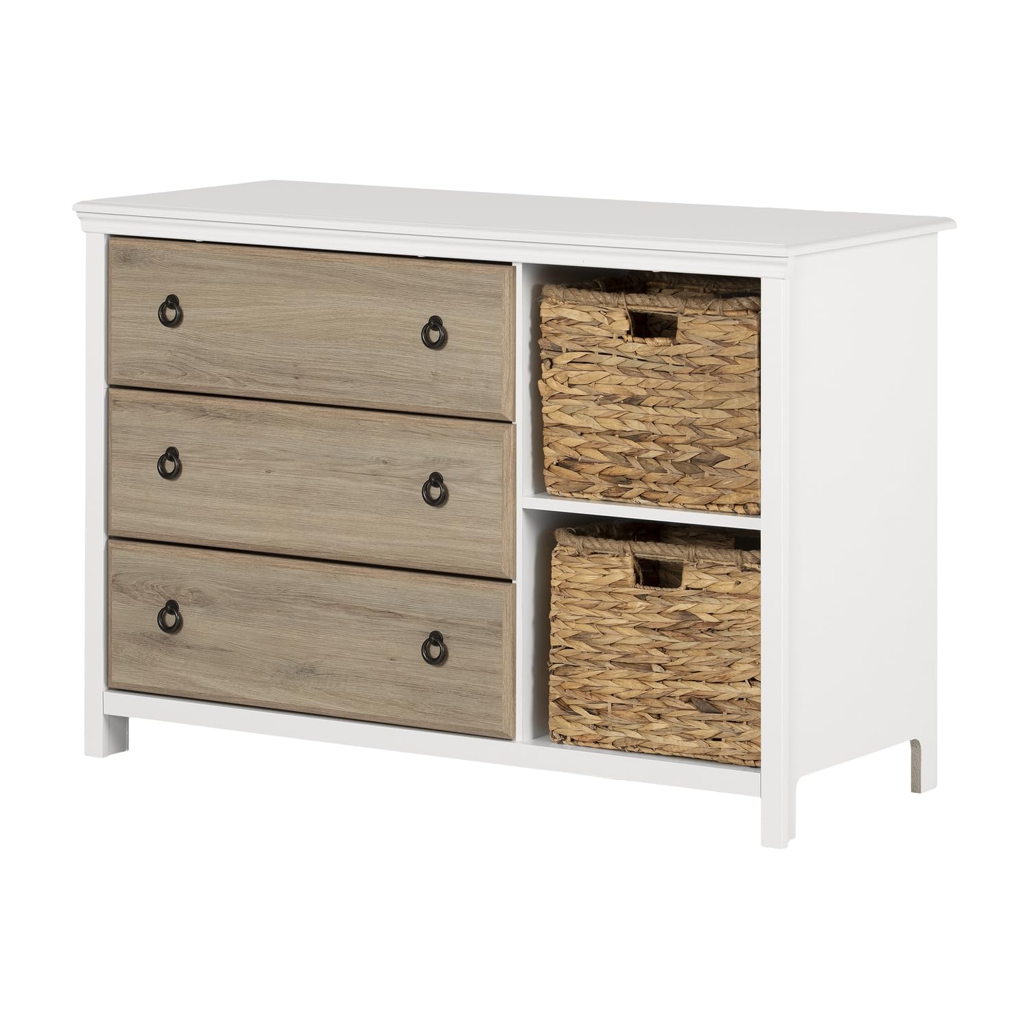 Cotton Candy 3-Drawer Dresser with Baskets Pure White and Rustic Oak, Coastal
