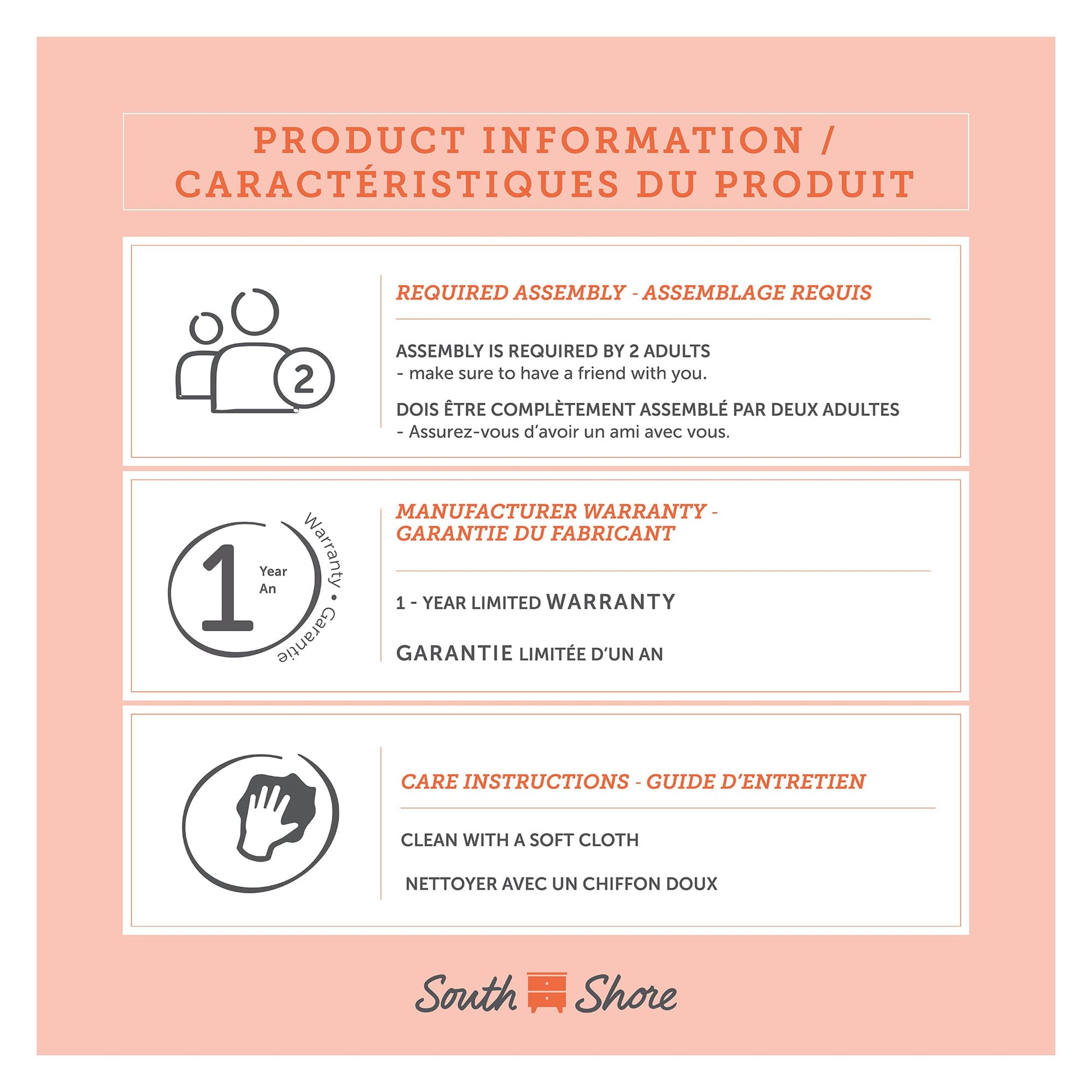 - 1-YEAR LIMITED WARRANTY: South Shore is proud to stand behind this upholstered complete platform bed with an exclusive 1-year limited warranty. Shop with confidence knowing your purchase is always covered.
